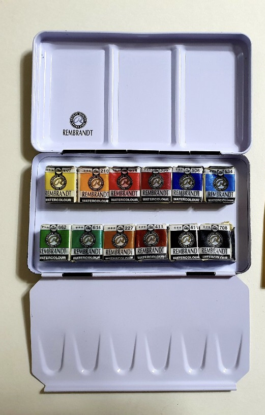득템한 12색에 내가 갖고 있던 렘브란트 낱개 물감을 더하니 알찬 세트 구성이 되었다.