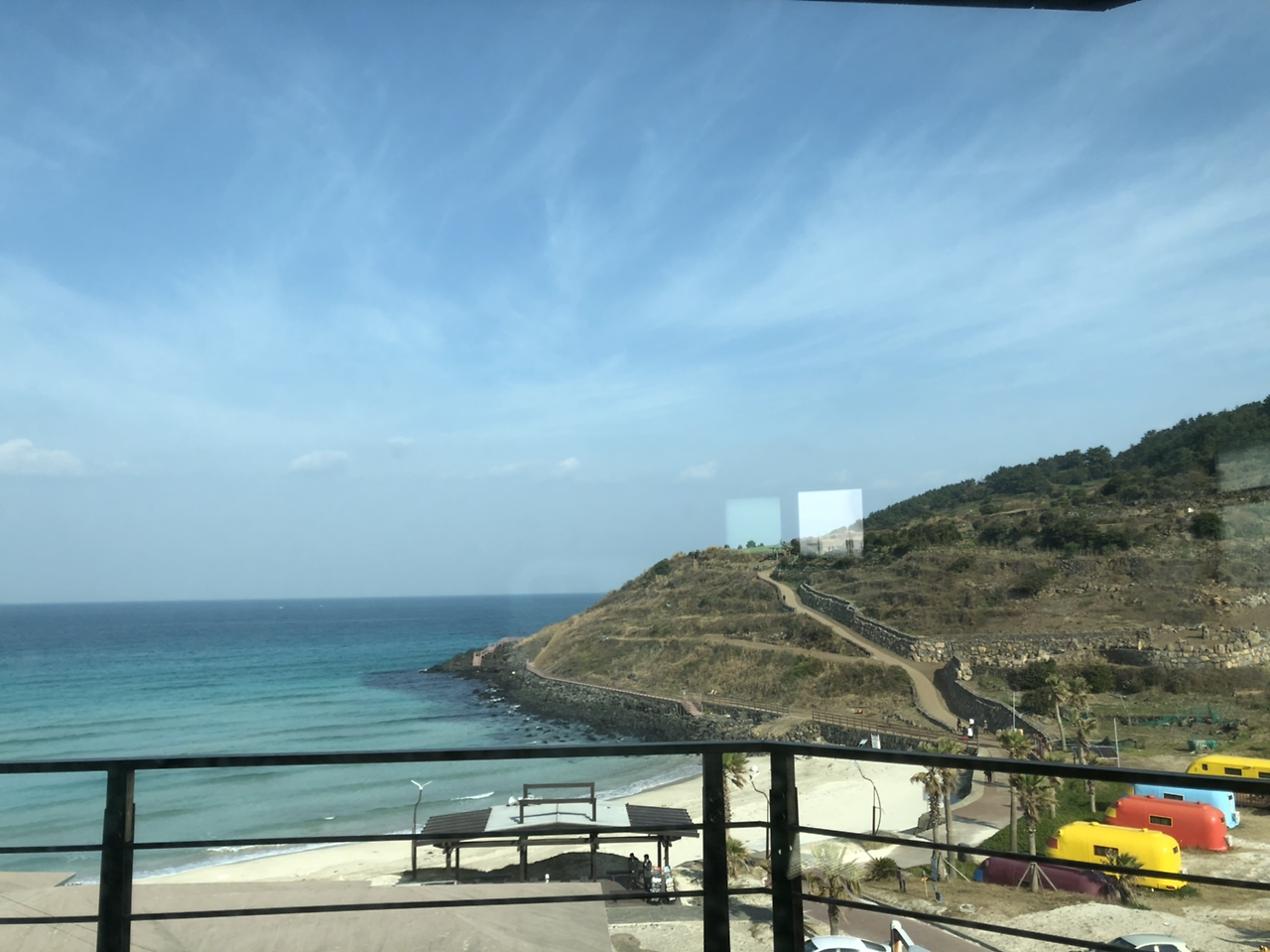 실경은 햇빛 비친 바다가 노란 빛 도는 은색인데 사진에는 주황빛으로 나오네. 주황이건 노랑이건 간에 보이는 대로 색을 구현해 낼 수 있으면 좋겠다.