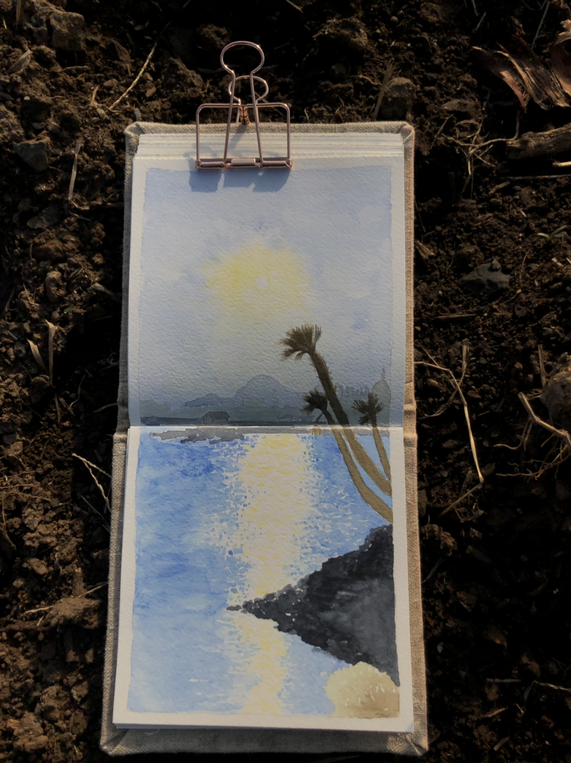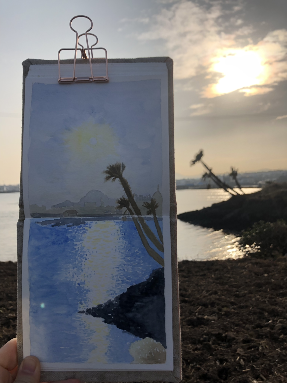 어제 아침 풍경이 너무 멋있어서 오늘 아침 그려보려고 부리나케 나왔다.