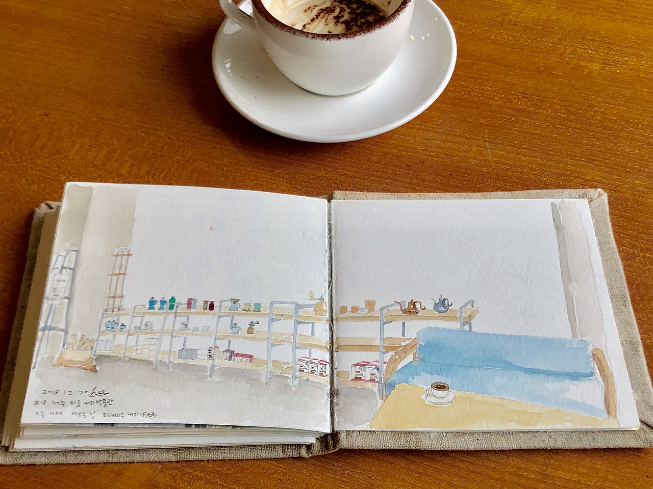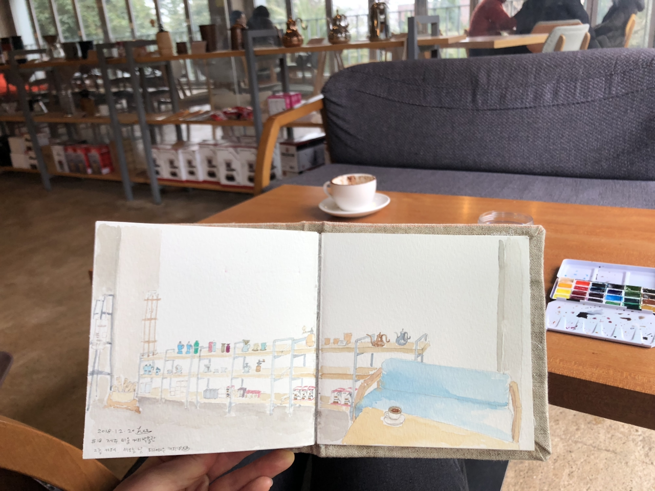 오늘은 커피 박물관 카페에서 어반 스케치.