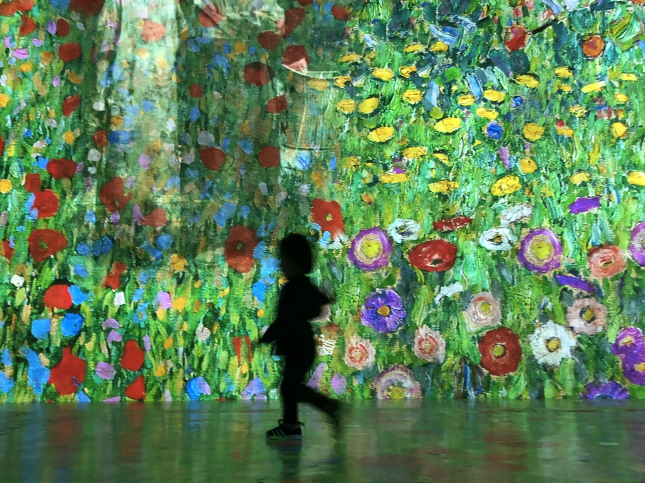 멋지게 편집한 명작의 영상물이 벽면 가득 채운다.
