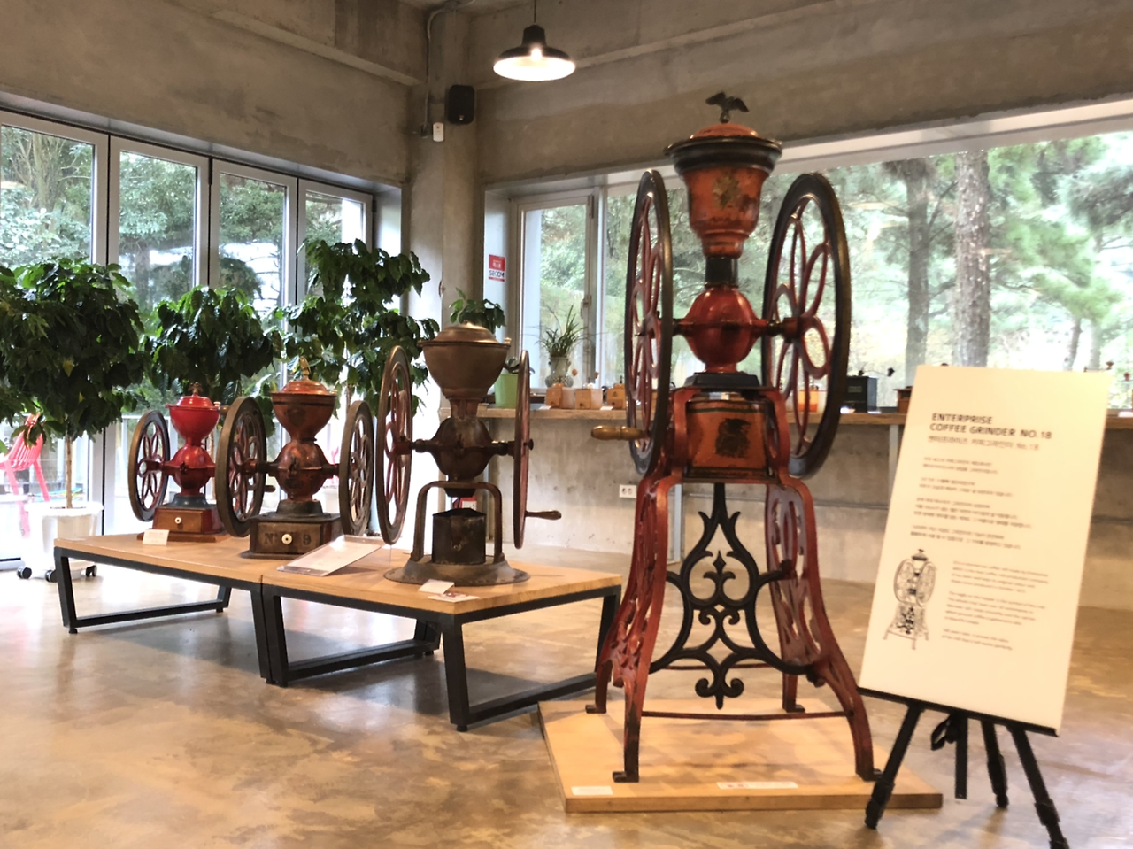 창 밖의 아름다운 정원과 잘 어우러지는 커피 박물관. 커피 나무엔 커피 열매도 조롱조롱 달려있다.