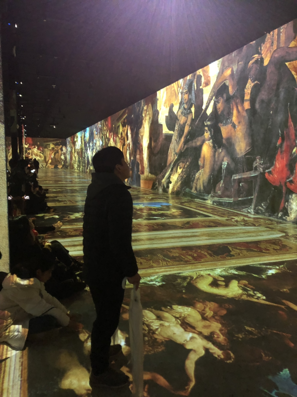 모두들 바닥에 털퍼덕 주저 앉아 전시를 관람한다.