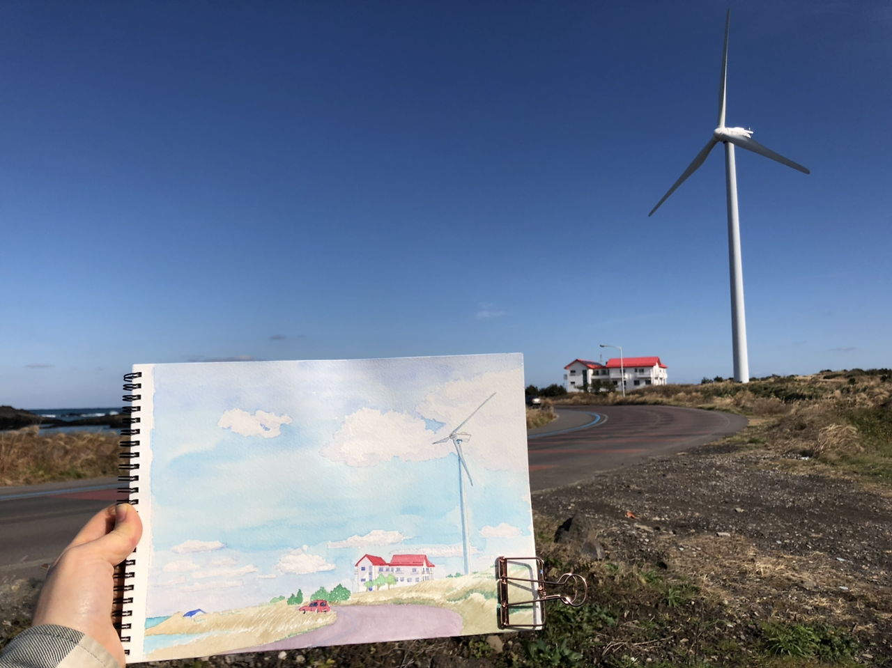 바람이 이렇게 많이 부는 날 밖에서 그리다간 입돌아갈 판이다.