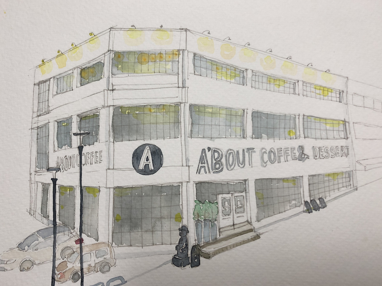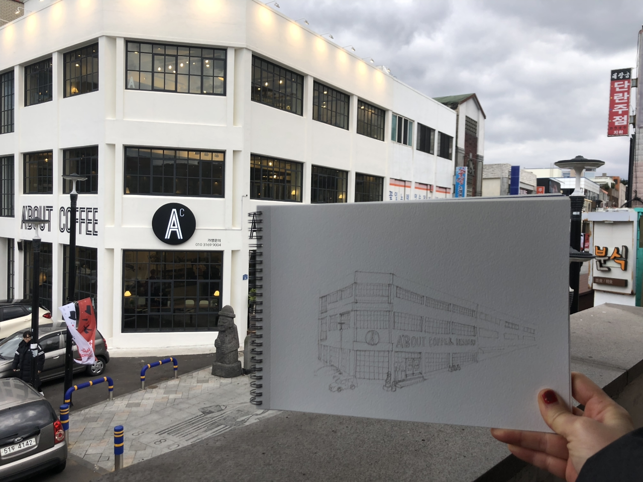 아빠와 큰아들은 신발사러, 동생들은 차에서 자고, 나는 그 틈에 잠깐 주차장에서 어반스케치.