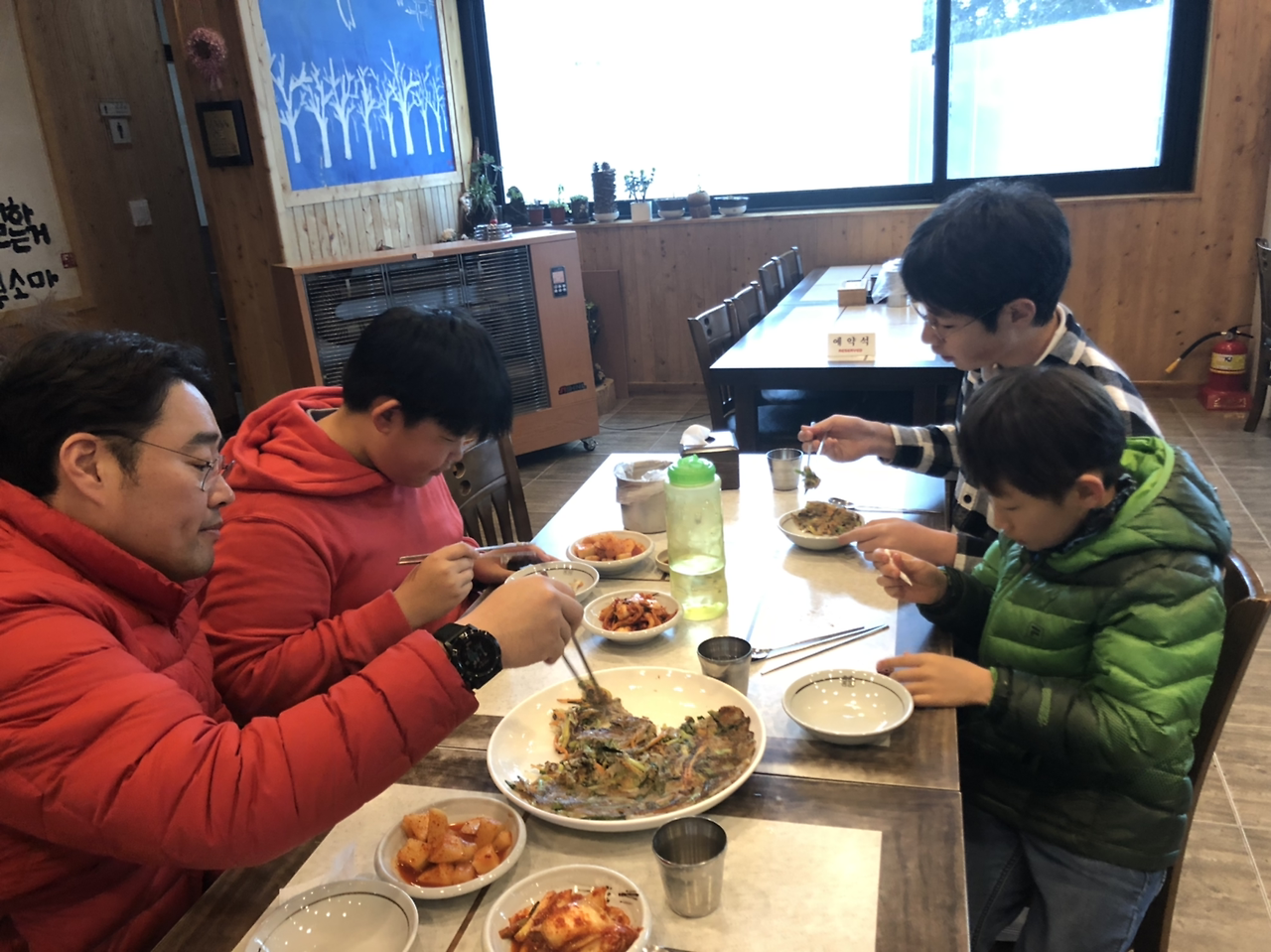 점심 식사는 교래 손칼국수에서 닭칼국수를 먹는다.