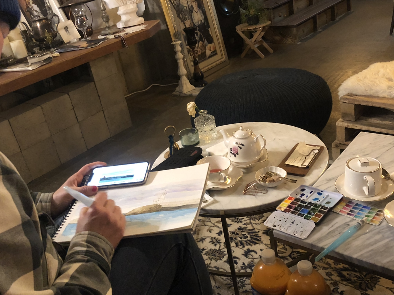 카페에서 낮에 보았던 이호 테우 해변의 말등대와 바다를 그린다. 워터 브러쉬 사용법을 익히는 중인데, 익숙해지면 간편하고 빠르게 그릴 수 있겠다.