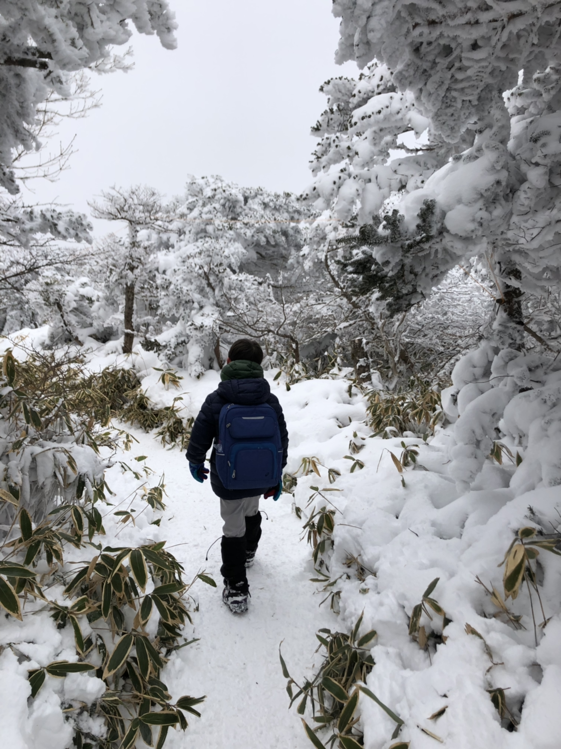 울퉁불퉁한 돌길에 눈이 쌓이고 다져져서 걷기 편한 오르막이 된다. 그 길을 아이젠 신고 뽀득뽀득 밟으며 올라가는 것이 재미지다.