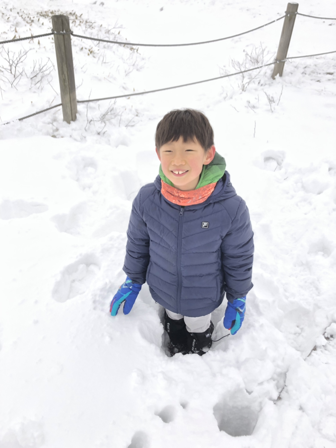 아빠가 스틱으로 톡 쳐서 눈을 내려준다.