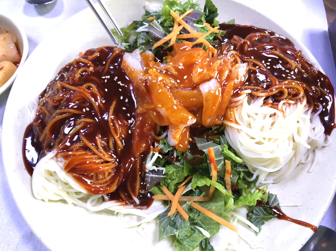 회국수, 회덮밥, 고등어 구이, 성게국수.