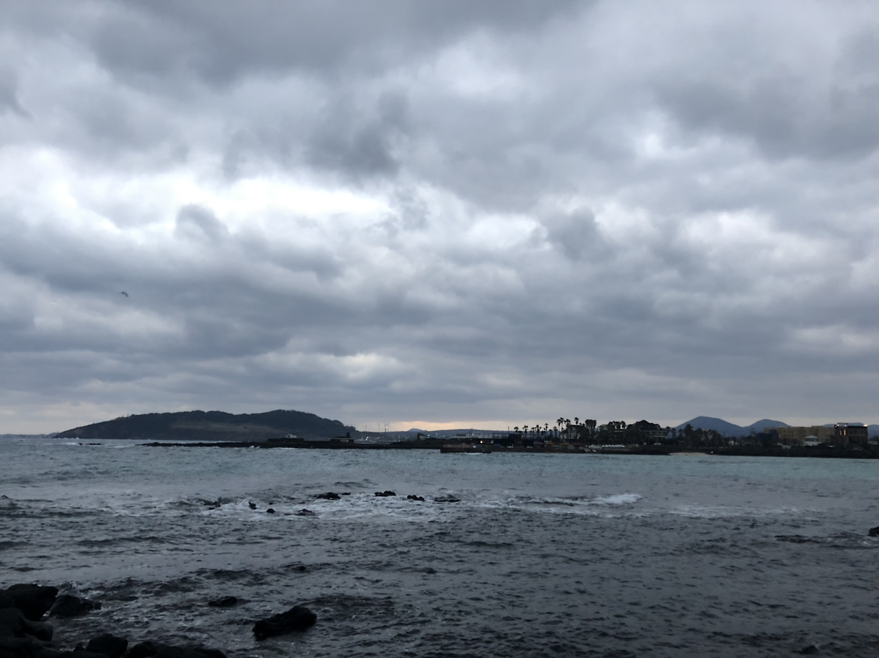 오후 내내 가다 쉬다 반복하며 해안도로를 따라 달리니 해질녘에 성산에 도착했다.