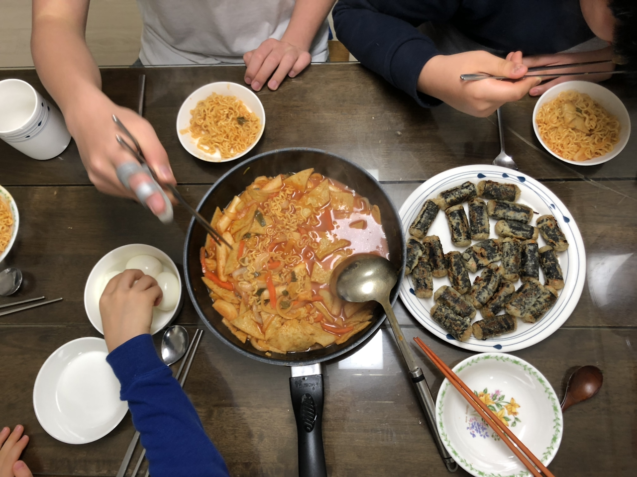 둘째가 만들어준 떡볶이로 다같이 저녁 먹기.