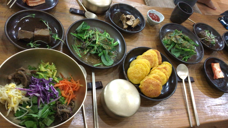산채비빔밥에 들어가는 당근과 호박 채를 썬 모양새가 어찌나 곱고 얌전한지!!