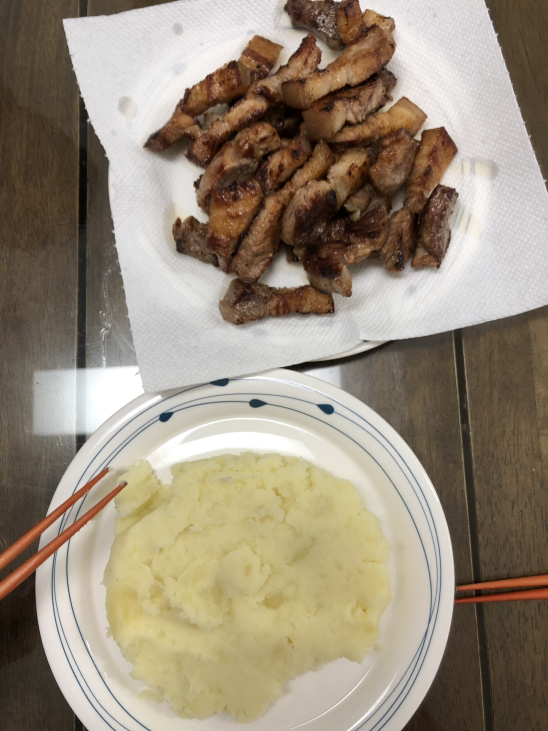 돼지 고기랑도 먹을 수 있구나. 맨입에 먹어도 맛있고 입안에서 부드럽게 퍼지는 식감이 기분좋게 먹었다.