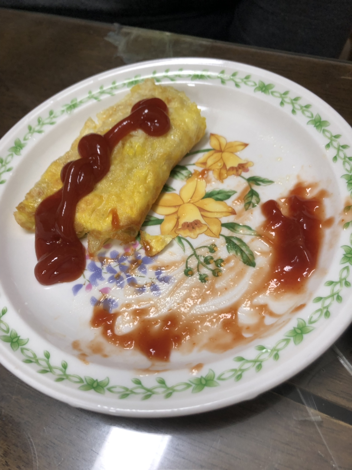 벌써 반은 먹어버린 뒤 찍은 계란말이 사진.