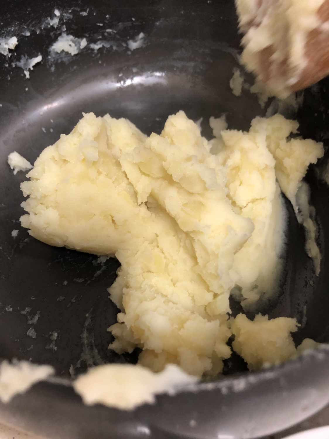 물을 빼고 으깬뒤 소금 후추 간하기.