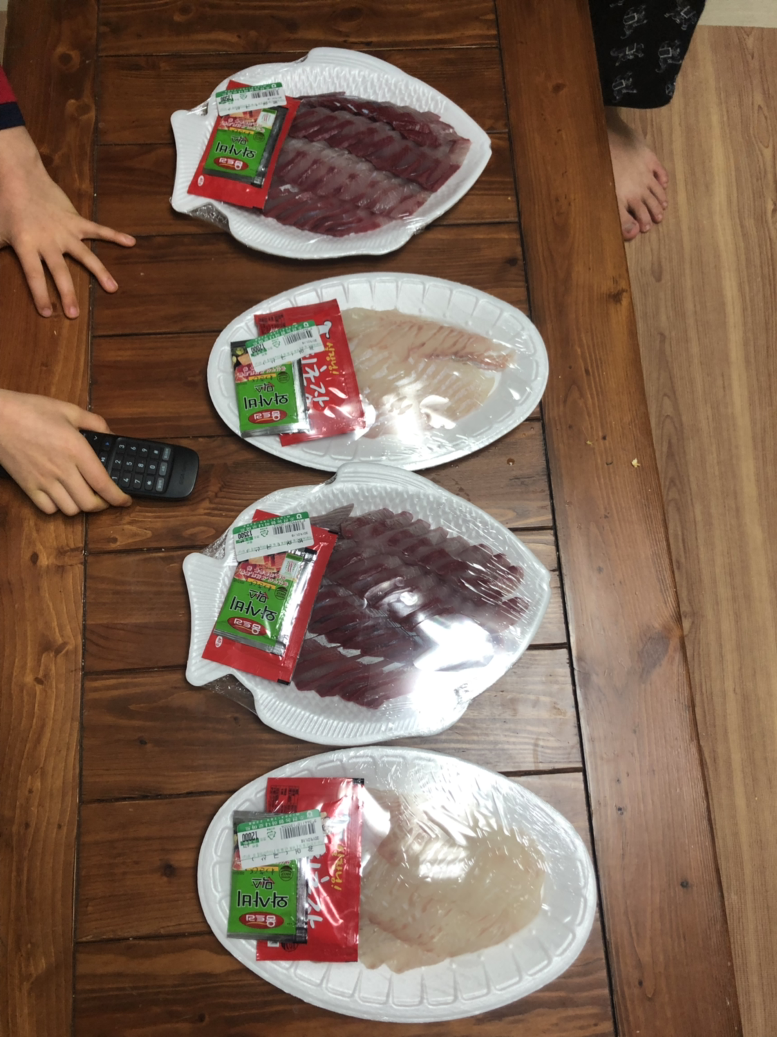 마트에 가서 방어회와 광어회 사다 먹는 저녁.