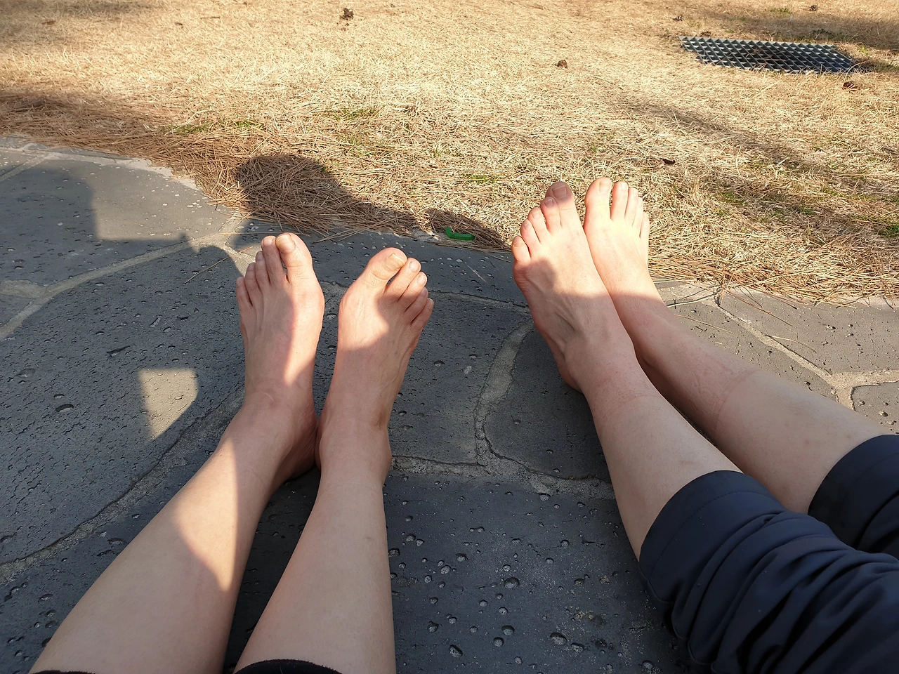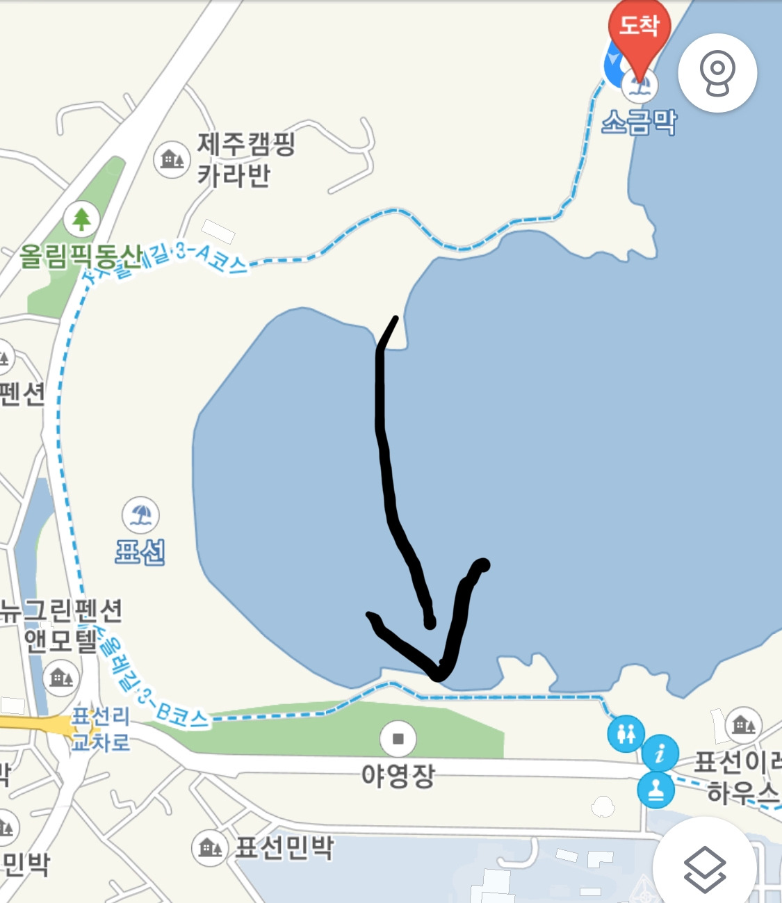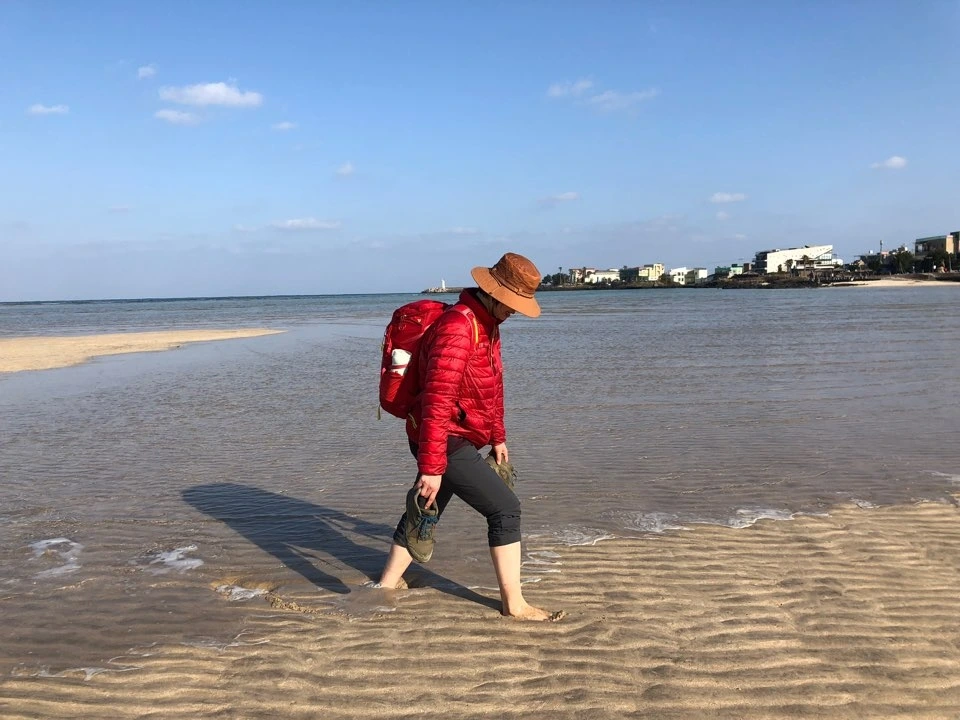 건너편 표선 야영장에서 발을 씻어 말린다.