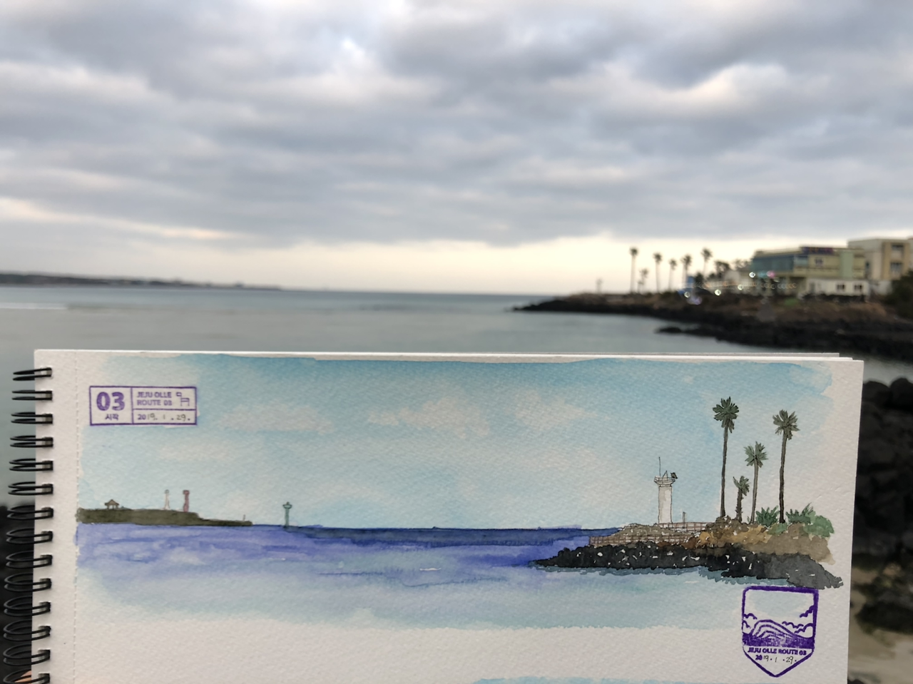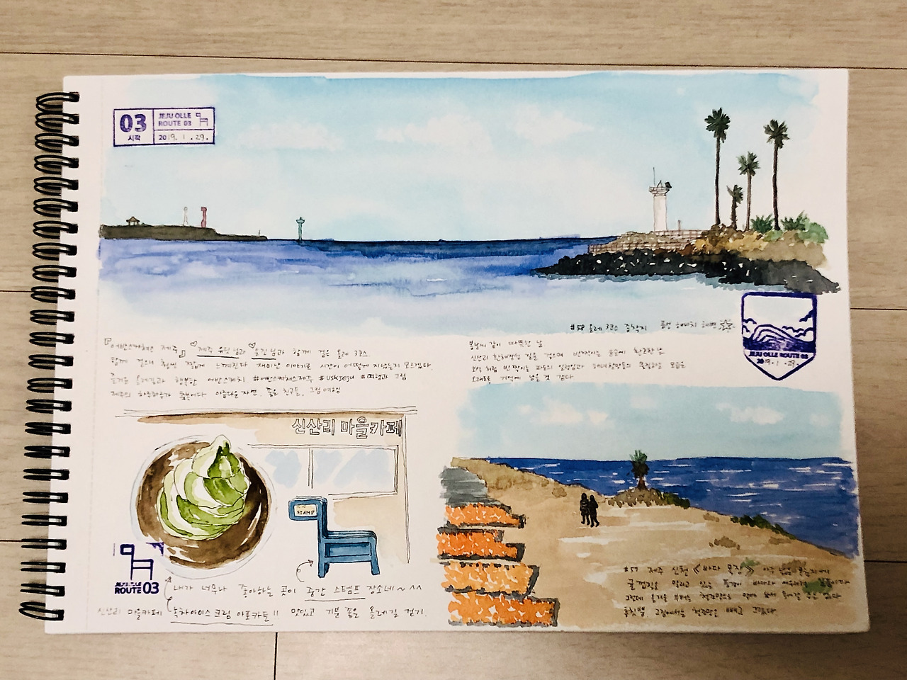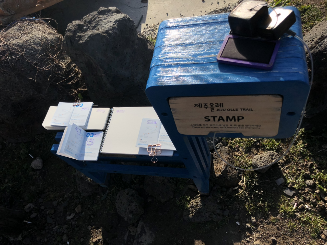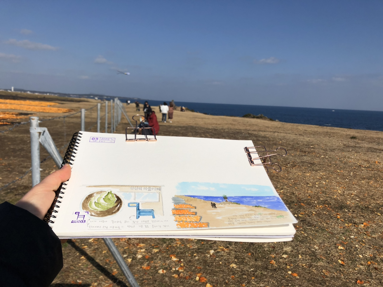 각자 올레 패스포트와 드로잉북을 꺼내 스템프 찍는 전문 올레꾼이자 어반스케쳐들. ㅋㅋㅋ