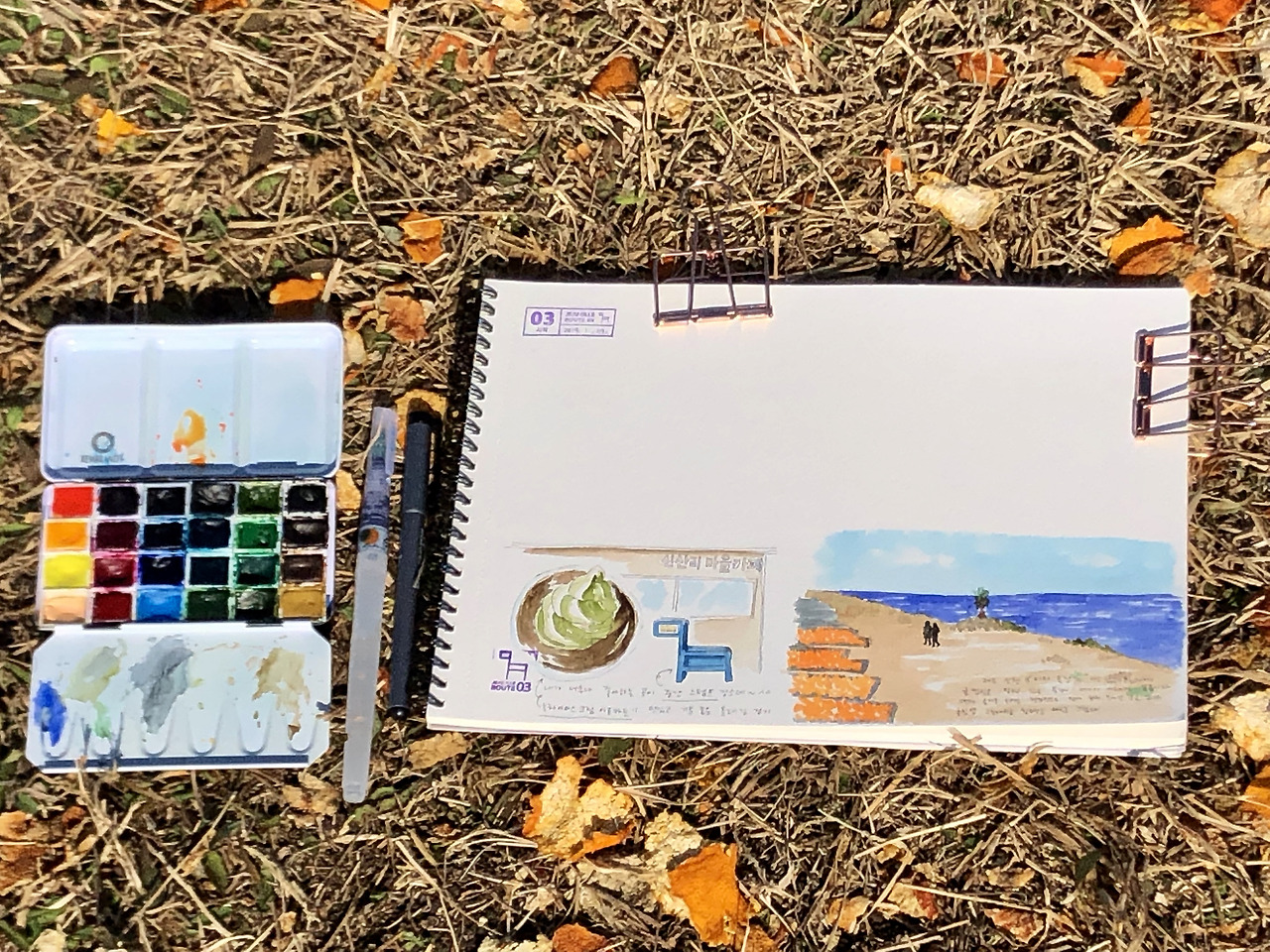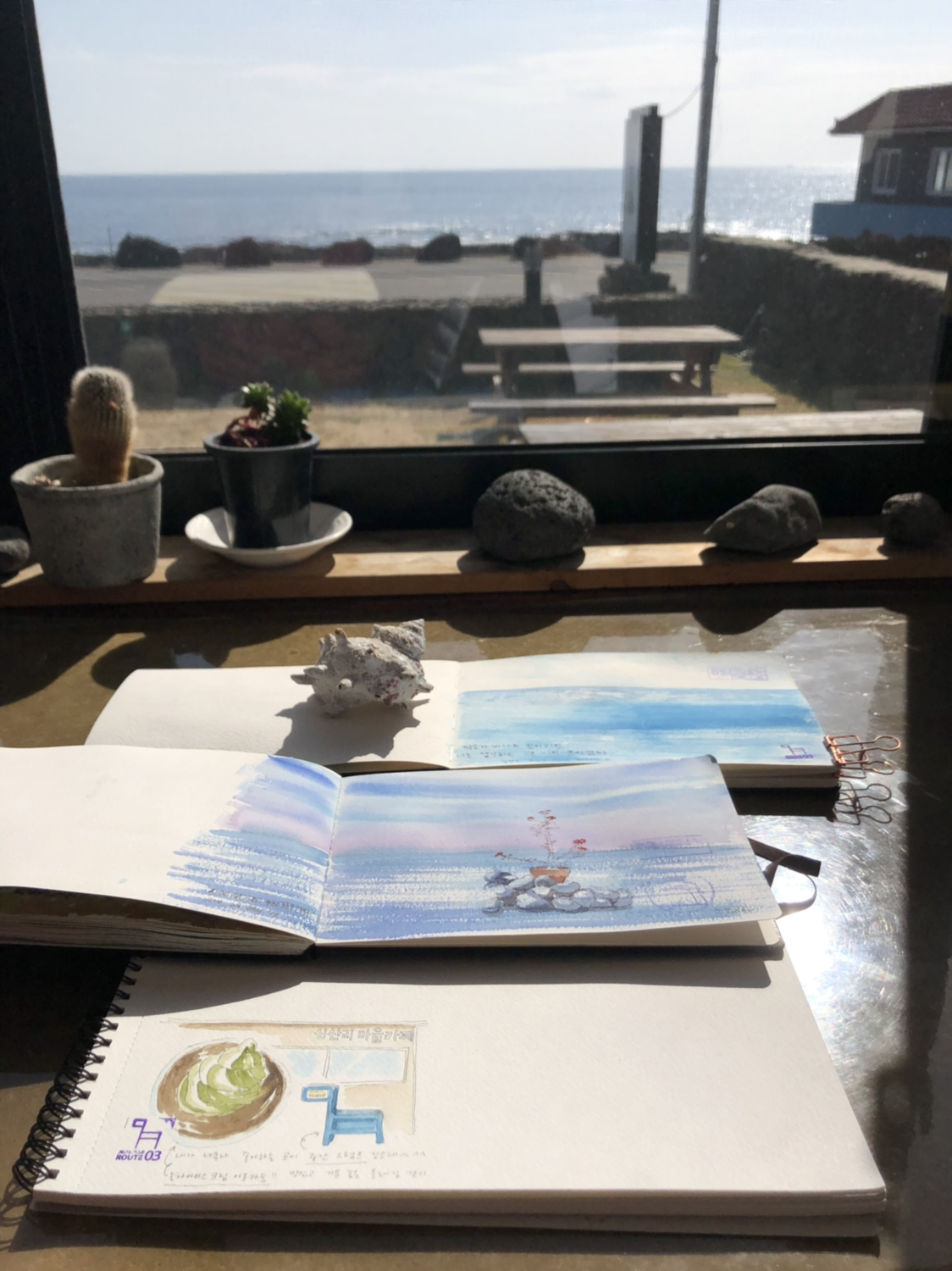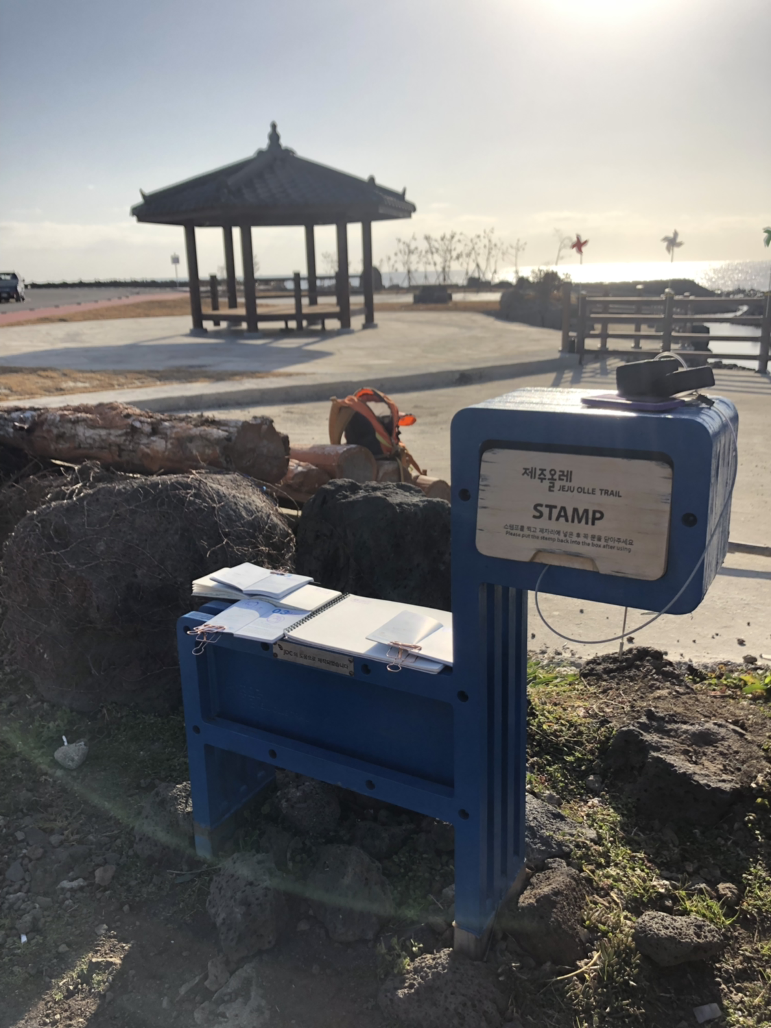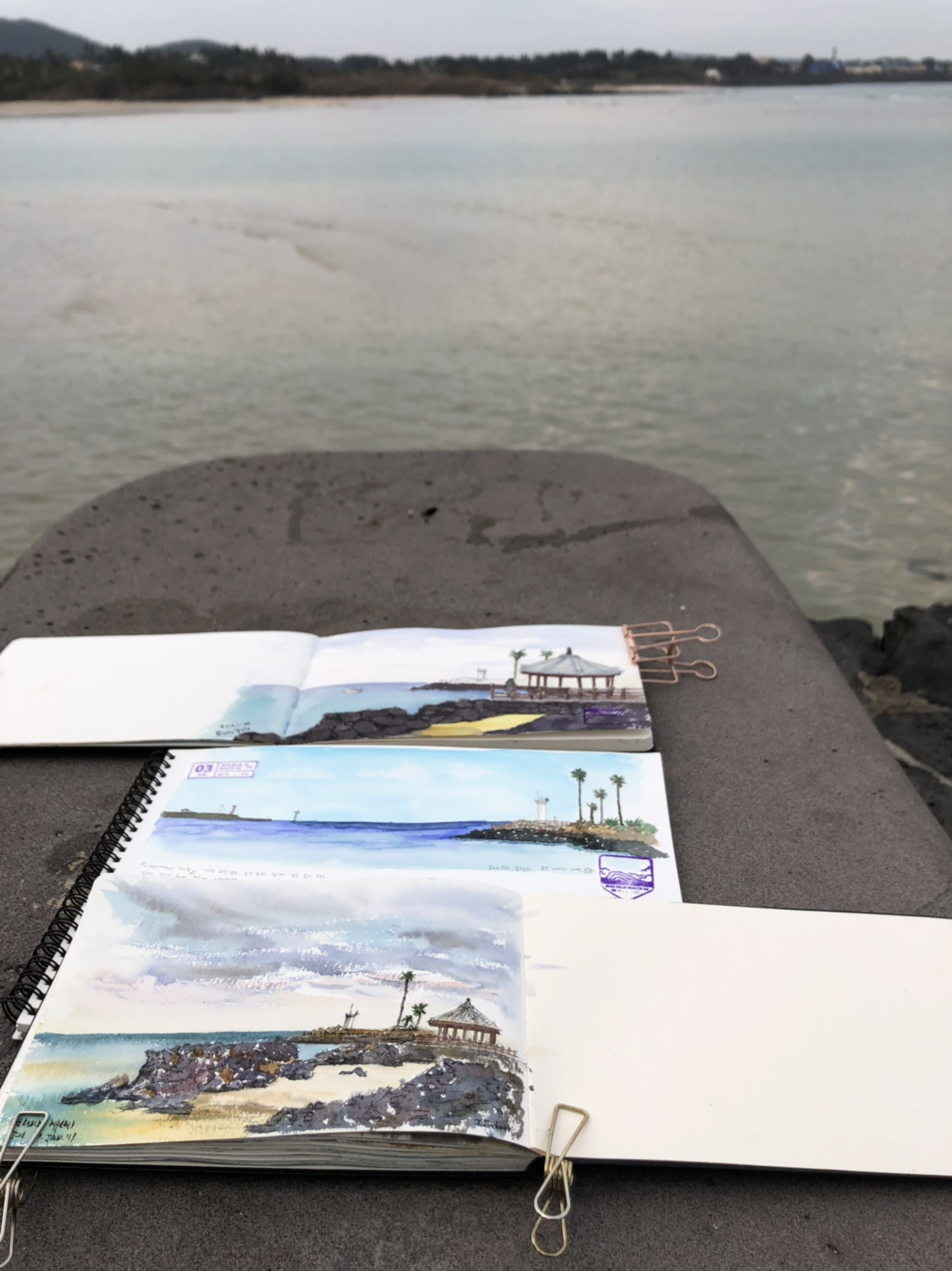 각자 올레 패스포트와 드로잉북을 꺼내 스템프 찍는 전문 올레꾼이자 어반스케쳐들. ㅋㅋㅋ