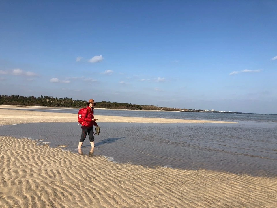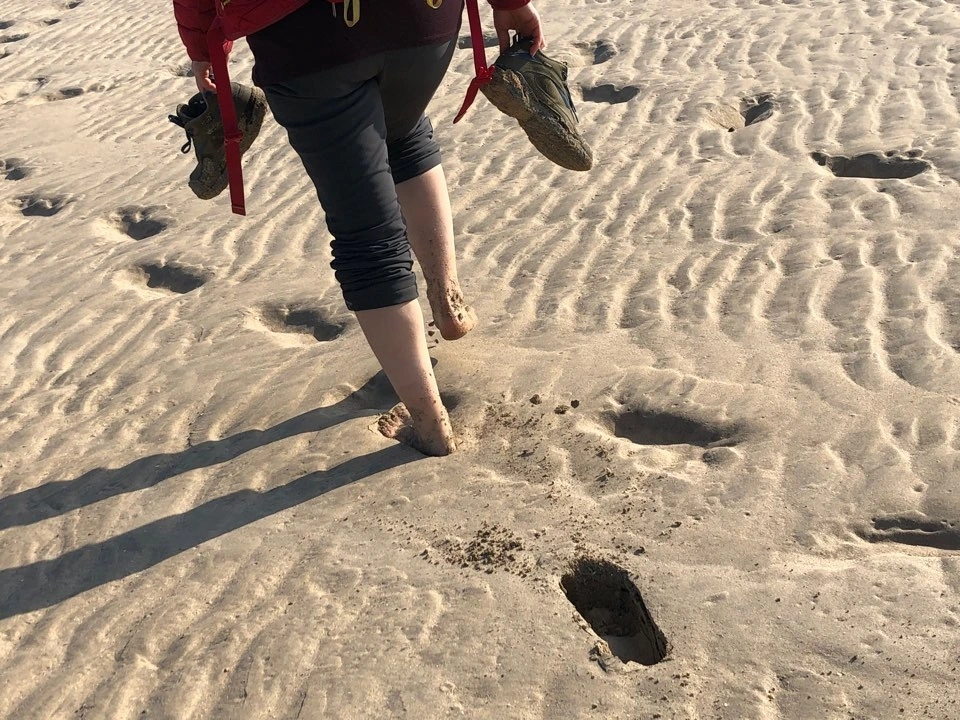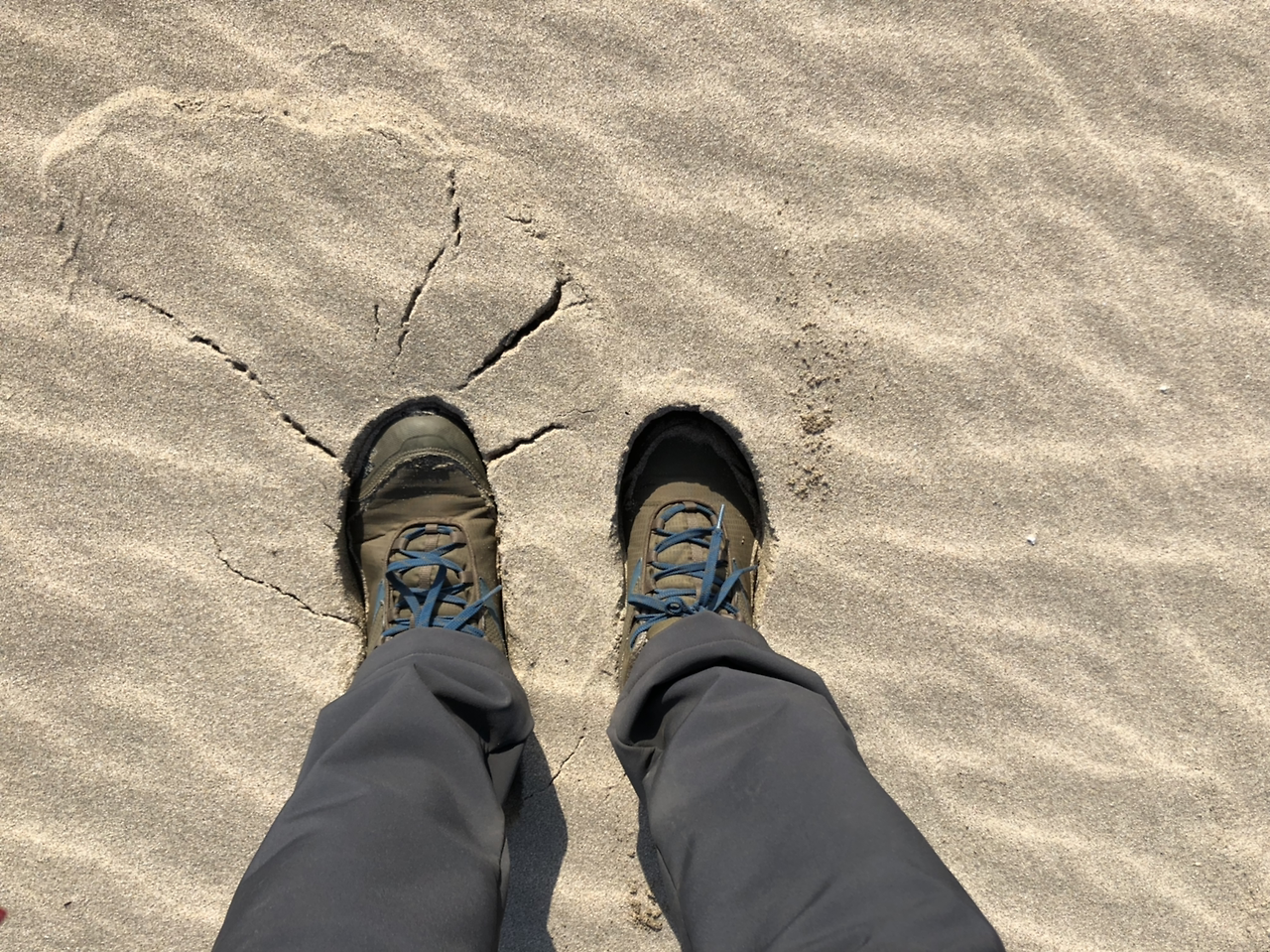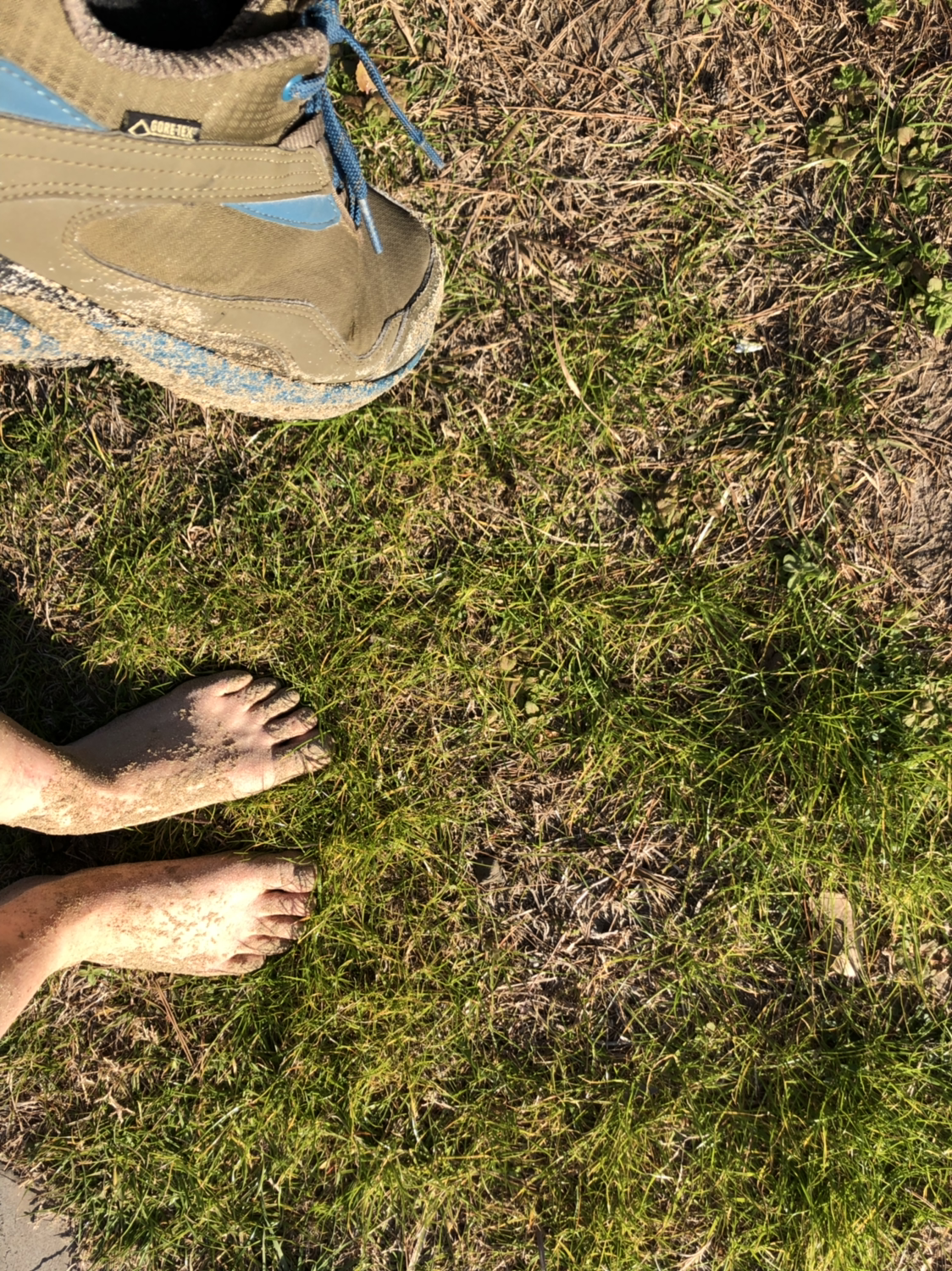 게다가 중간에 물이 들어와있는 짧은 구간에선 발이 더 깊이 빠진다. 결국 신발을 벗고 맨말로 건너 감. ㅋㅋㅋ
