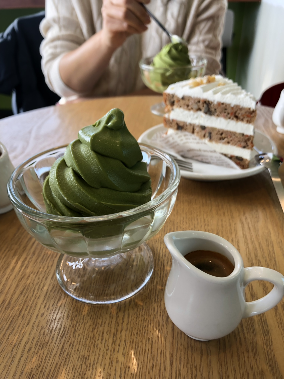 맛있는 녹차아이스크림 아포카토와 당근케이크.