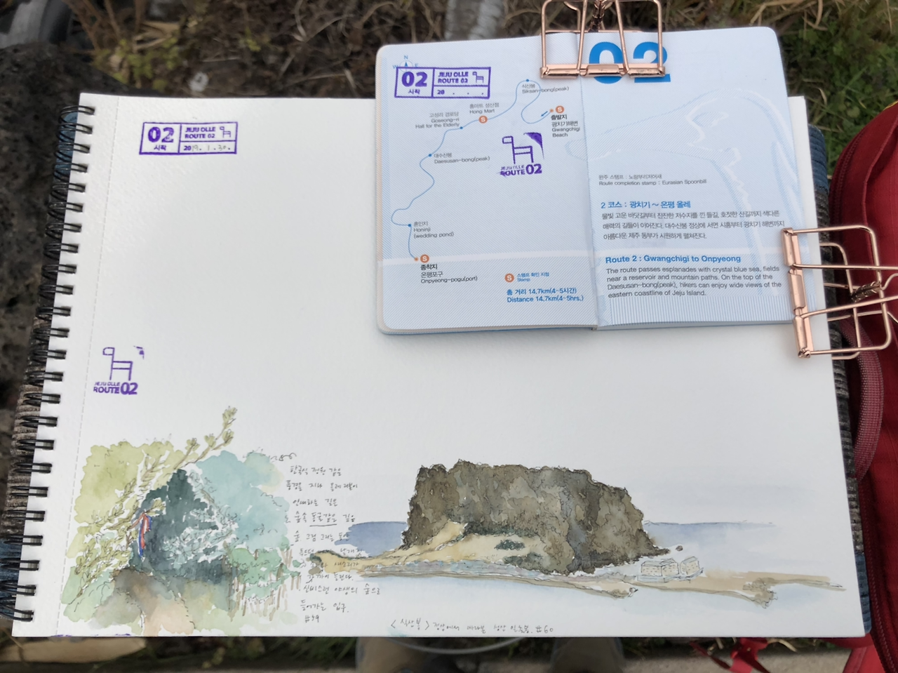 오늘은 올레길 2코스의 시작점 광치기 해변에서 중간 스템프 찍는 홍마트 까지만 걸어간다.