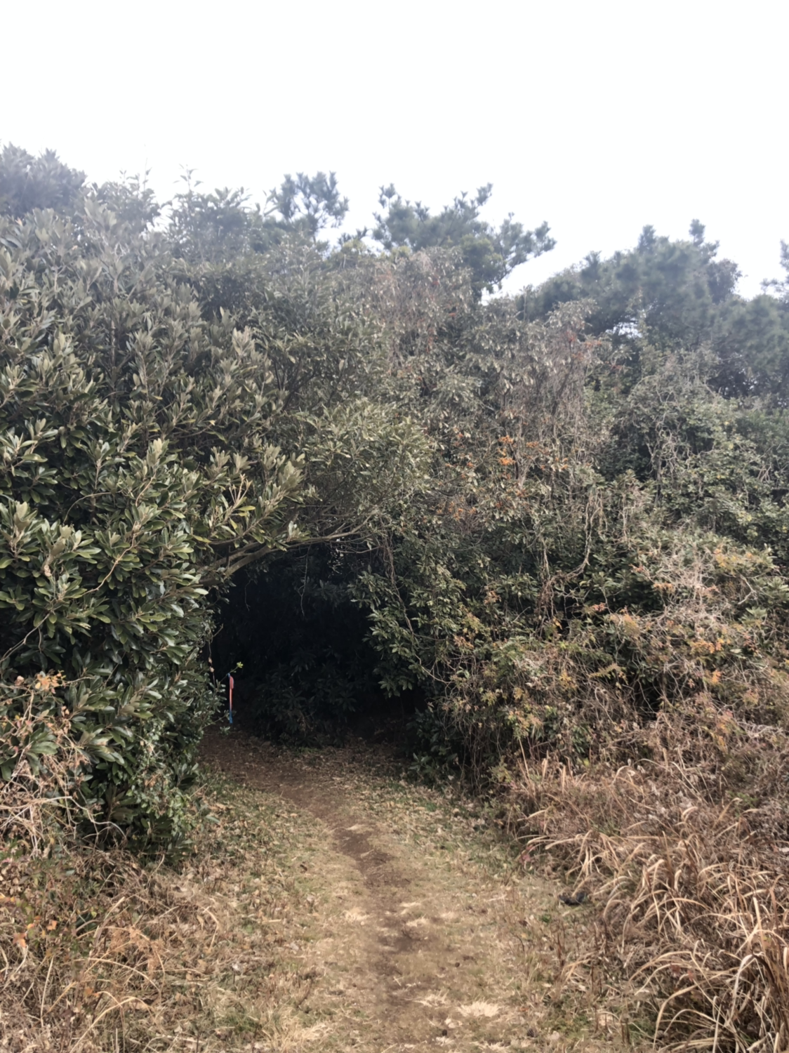 아기자지한 예쁜 길을 지나 올레길은 동굴 같은 숲 속 터널로 이어진다. 저 터널 속으로 들어가면 토토로를 만날지도~ ㅋㅋ 이상한 나라의 앨리스가 된 것 같기도 하고, 그 너머에 뭐가 있는지 보이지 않아 살짝 두렵기도 했다. 올레 리본을 따라 깊은 숲으로 가니 신뢰의 관문을 통과하는 것 같기도 하다.