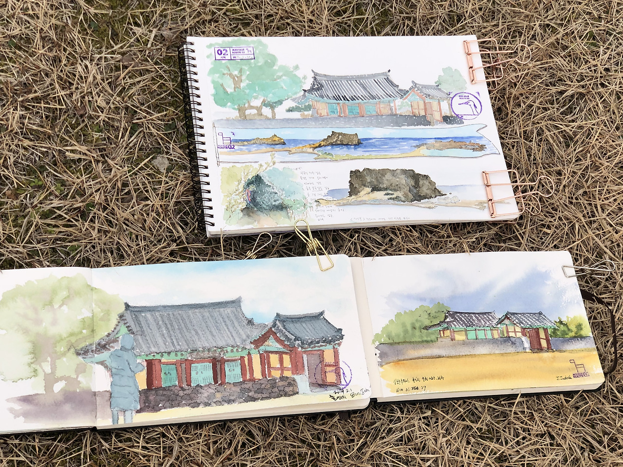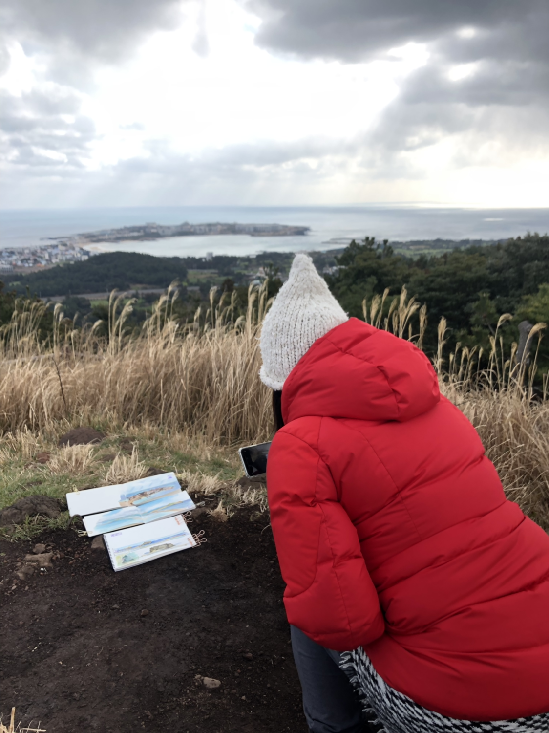 날이 춥고 바람 불었는데 그림 그리는 동안은 바람도 좀 잠잠하고 해가 나서 어찌나 감사한지.