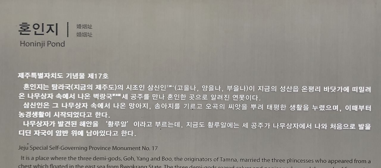 타고 왔던 차를 가지고 혼인지로 되돌아온다.