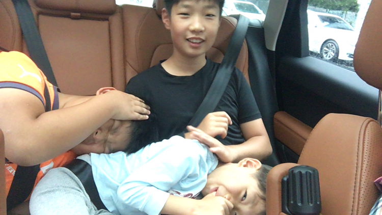 애들은 집으로 돌아가는 차 안에서