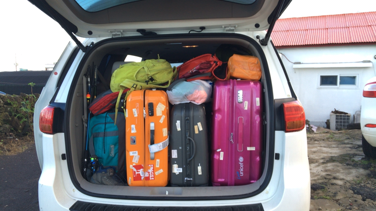 트렁크에 꽉 채워 싣고 떠날 준비..