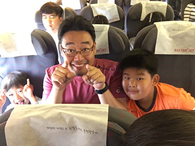우리는 비행기로 편하게 간다.