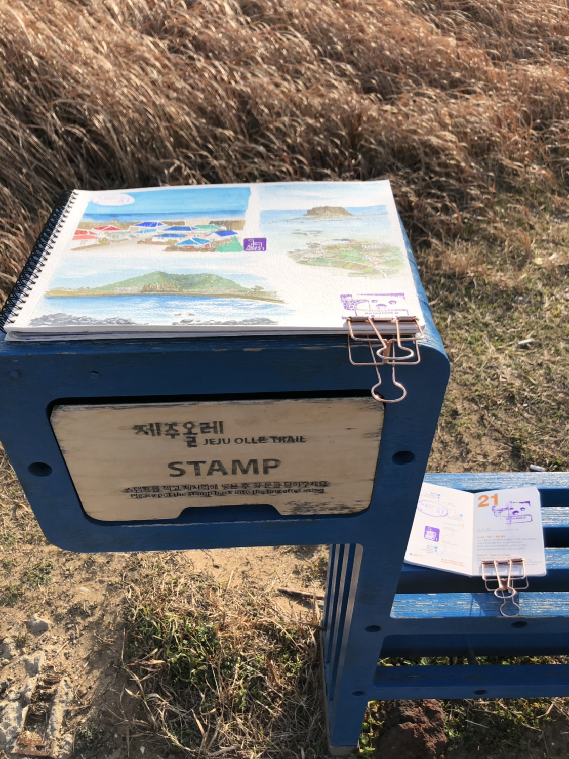스케치북과 올레 패스포트에 스템프를