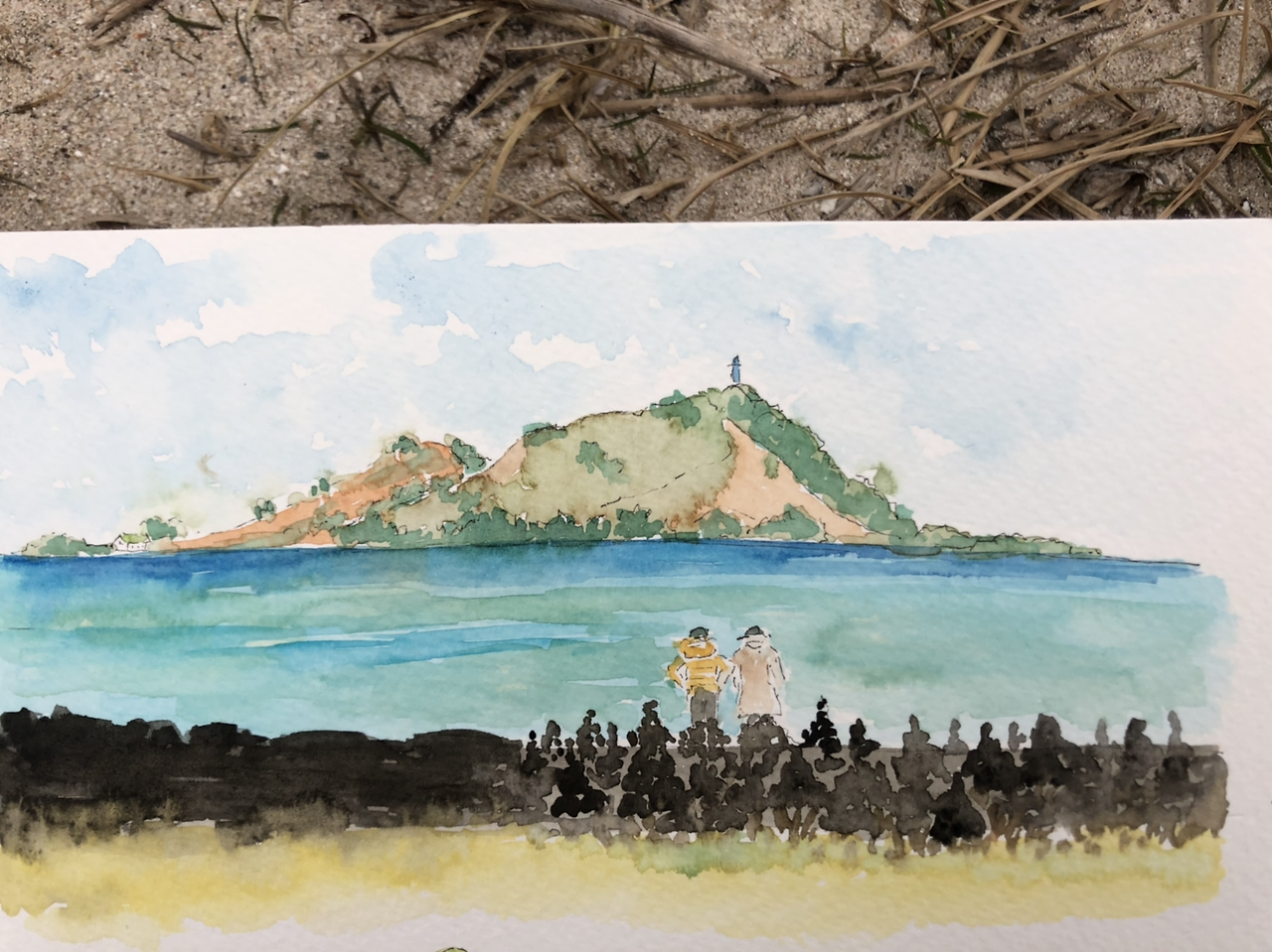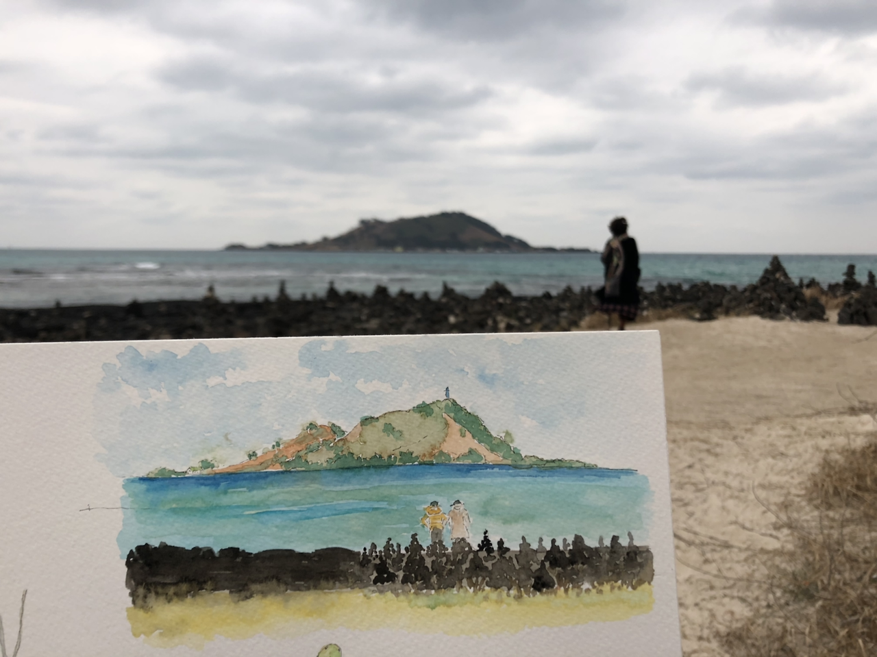 협재해변에 도착해서 비양도가 보이는 풍경을 후딱 그리고 집으로 출발.