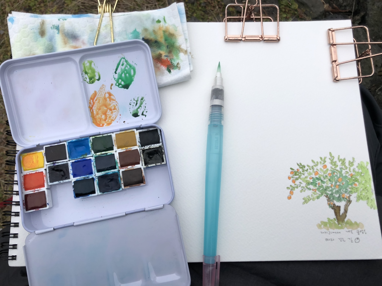 지나가다 만나는 귤밭이 이뻐서 잠깐 앉아
