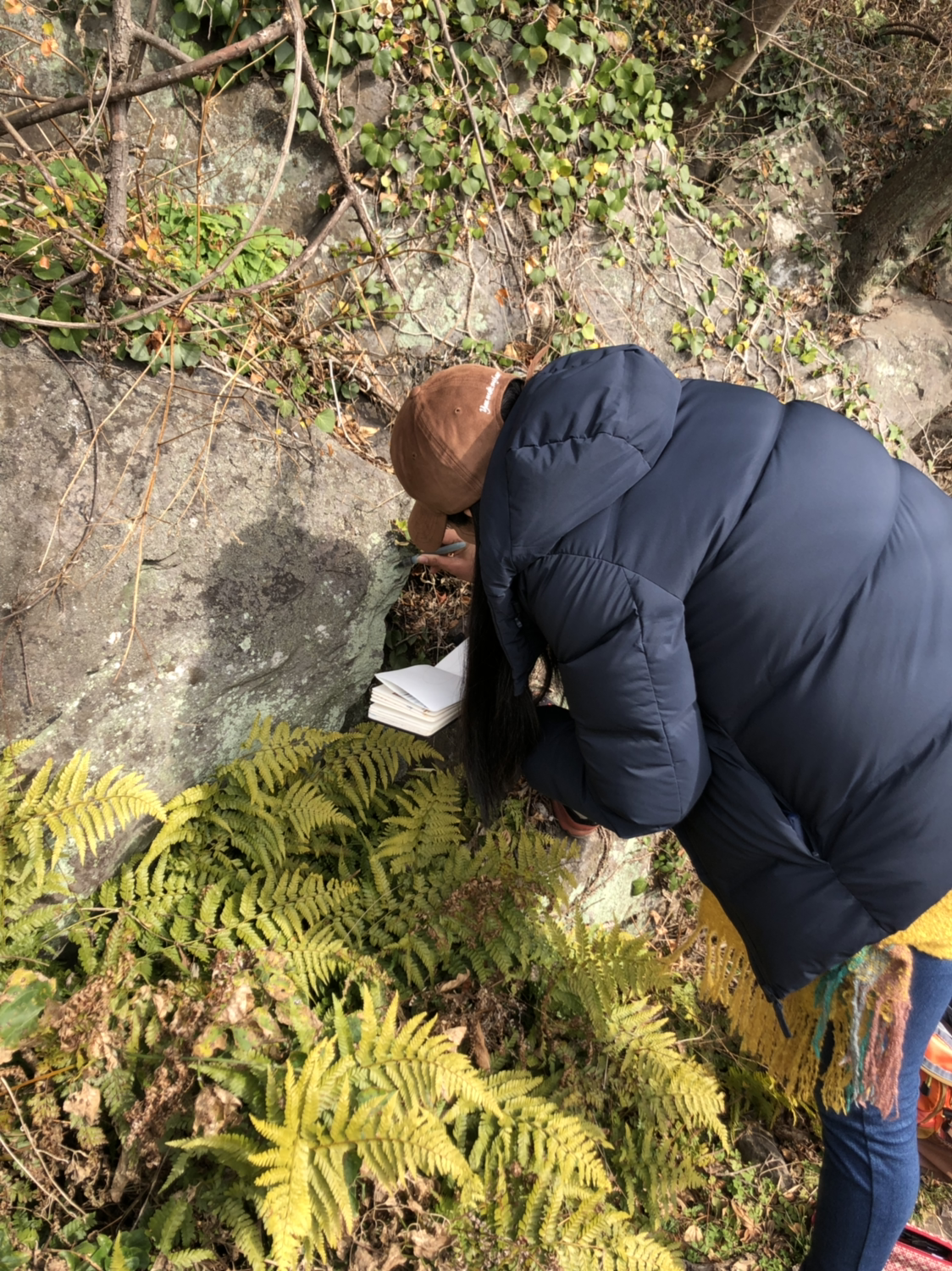 액션 페인터 제주 유딧님이 지의류를 물감삼아 그려보겠다고 나섰다.