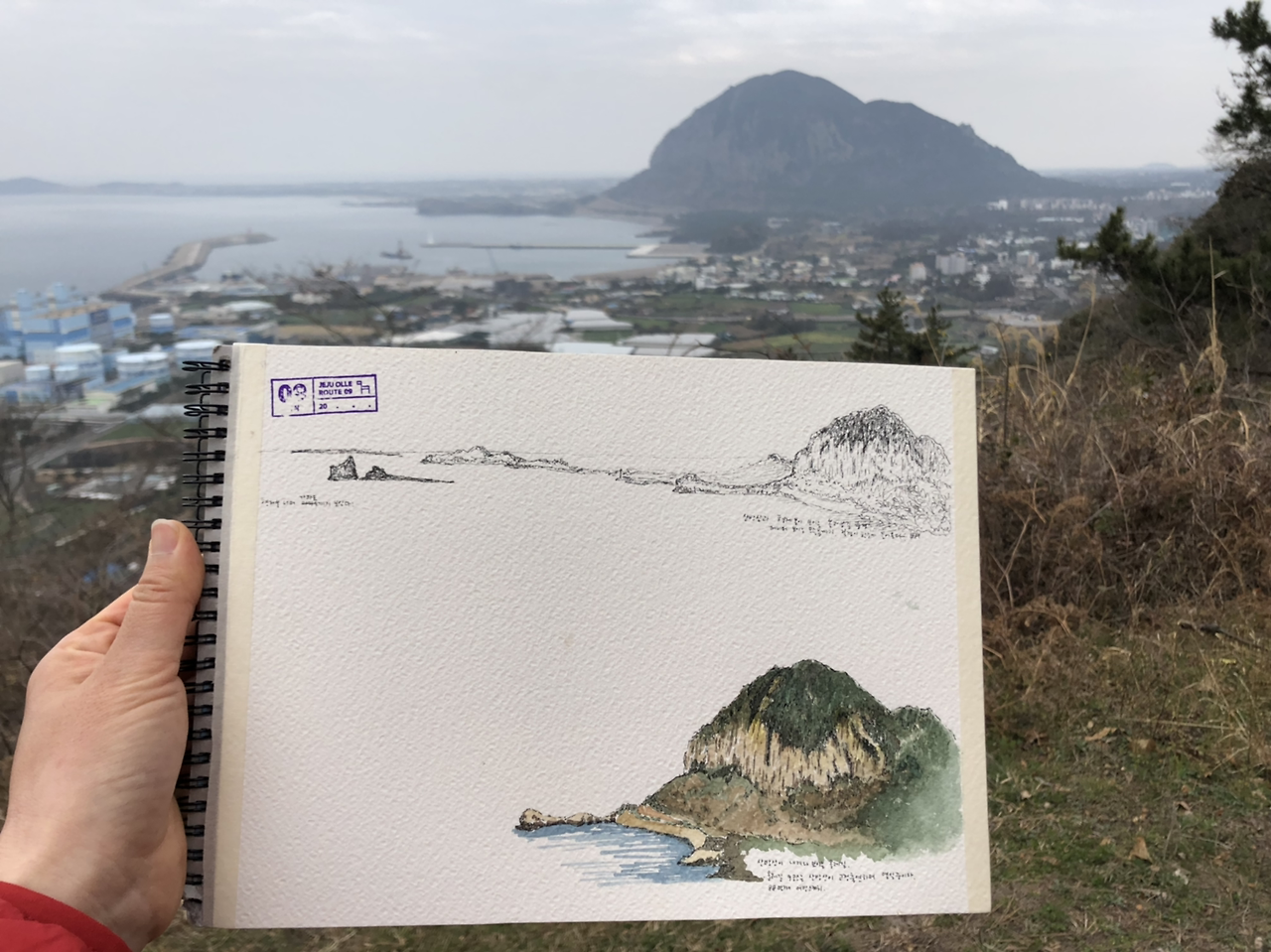 산방산 어반스케치가 마음에 꼭 들어서 기분 좋다.
