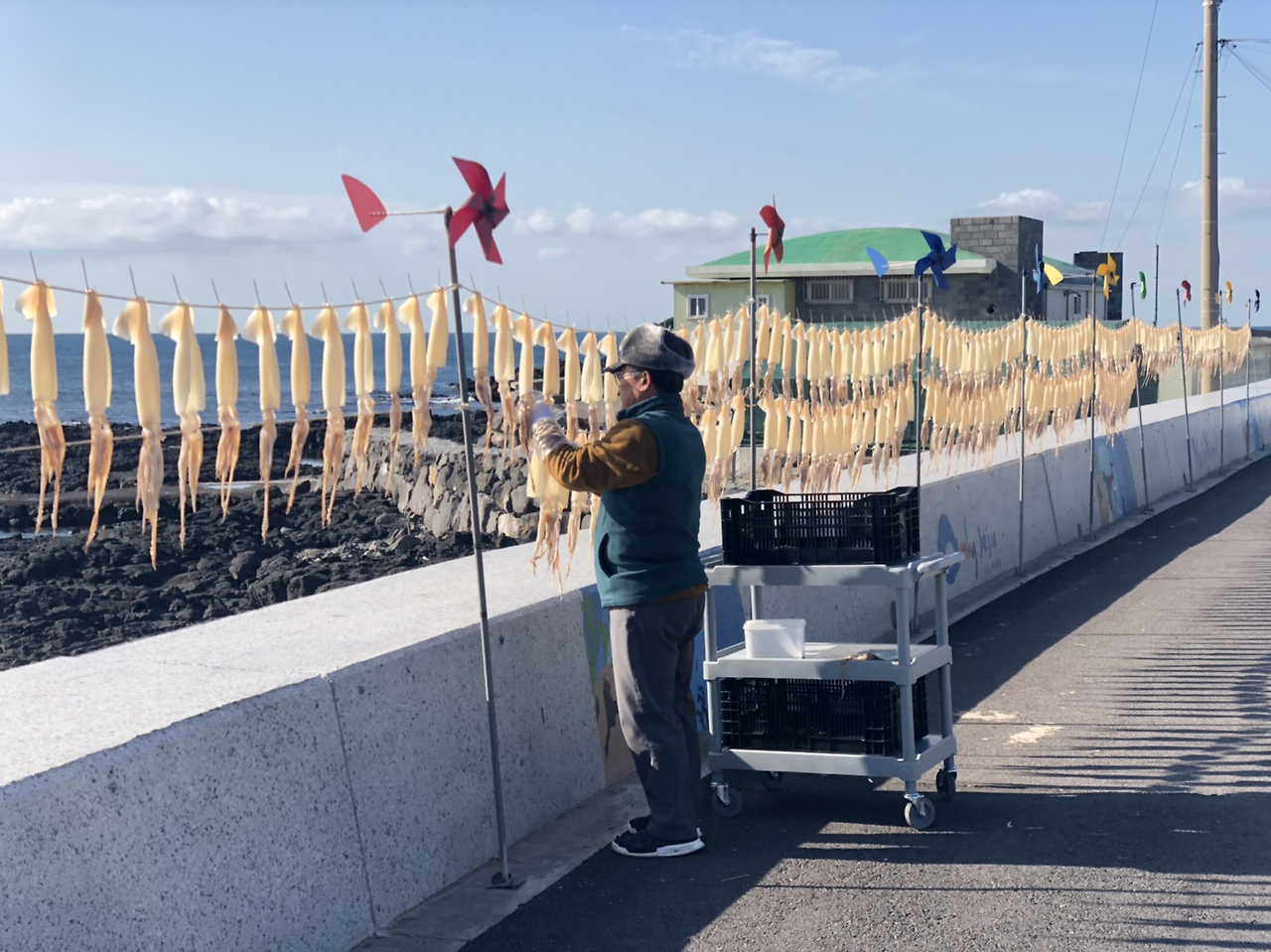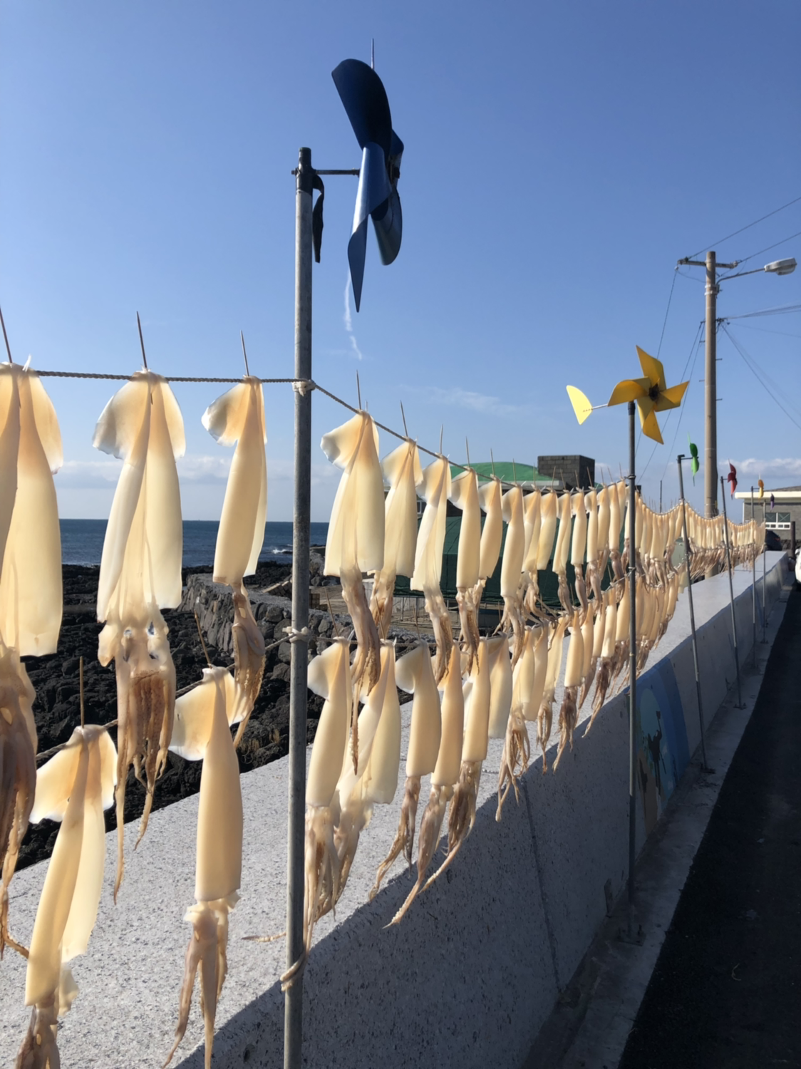 해풍에 말리는 오징어.