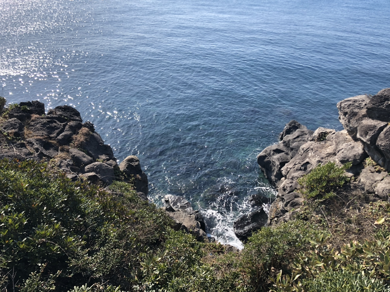 왼편으로 섶섬과 문섬이 보이는 서귀포 바다