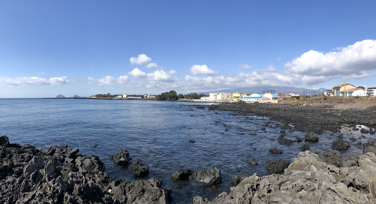 실제 풍경은 바다도 더 많이 보이고, 한라산도 더 선명하게 보인다. 카메라 바보.