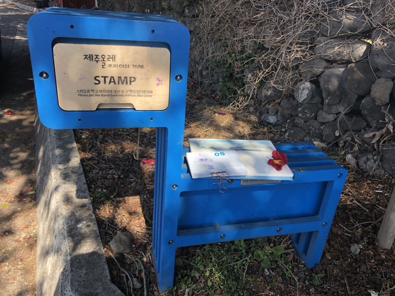 올레 5코스 중간스템프가 있는 위미리 동백 군락지.