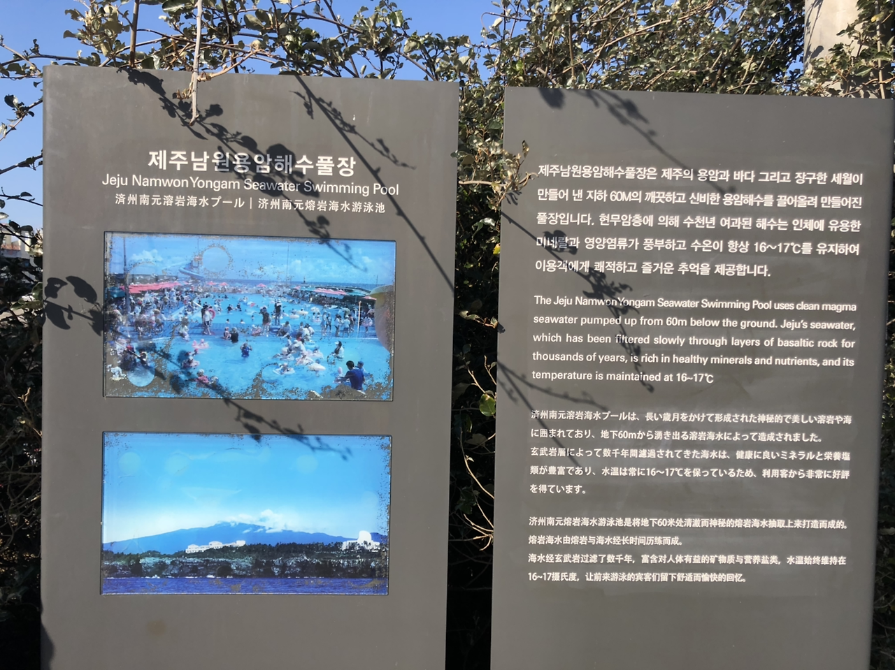 남원 포구에 있는 용암 해수 풀장. 여름에 지하 60의 깨끗한 해수를 채워 수영장으로 이용하나 보다.