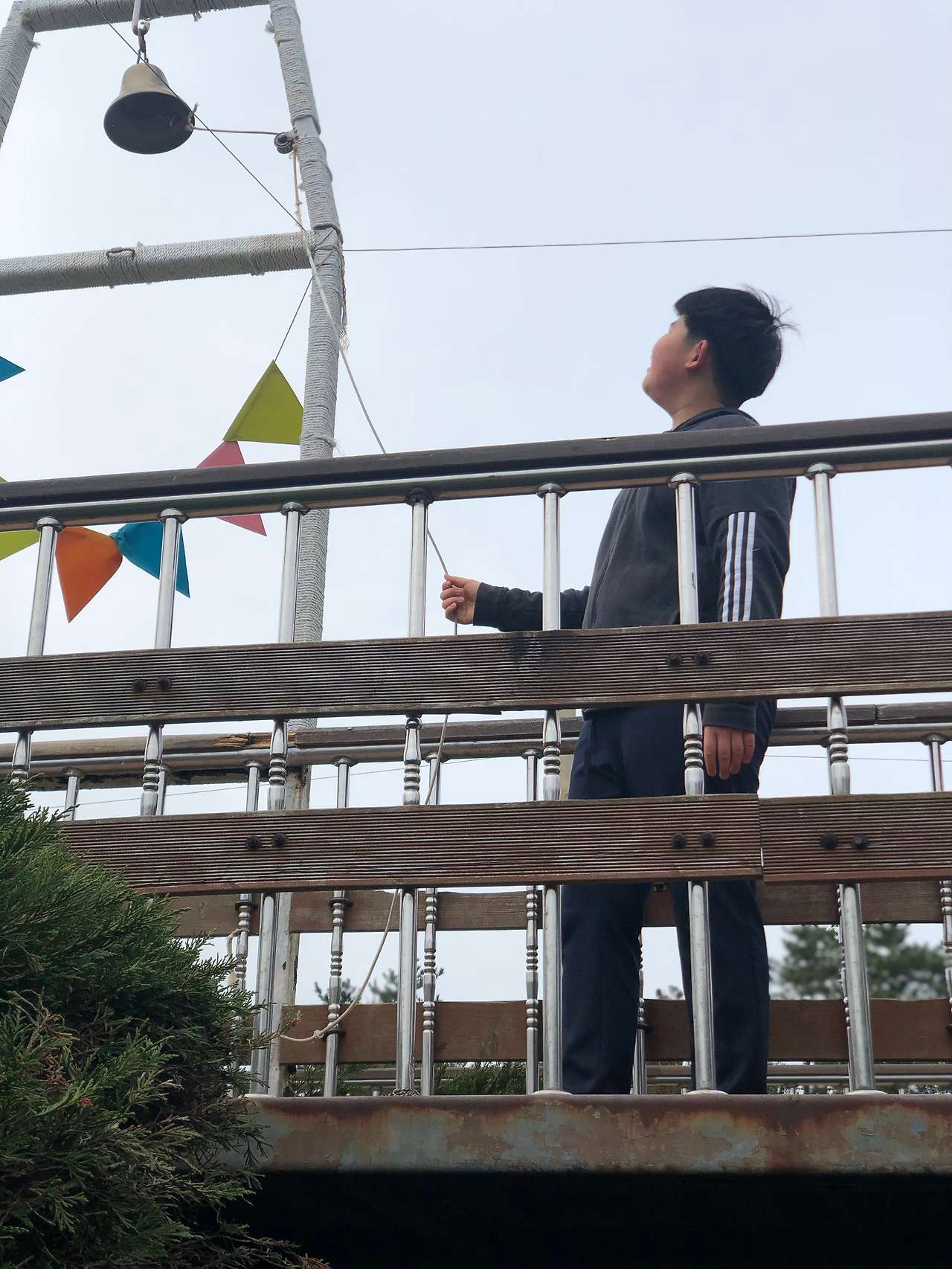 나는 막내 뒤만 졸졸 따라 다닌다. 형이 종 치는 것을 보더니 아까 형을 만났던 갈림길로 얼른 찾아가는 막내. 꾀많은 꾀돌이.