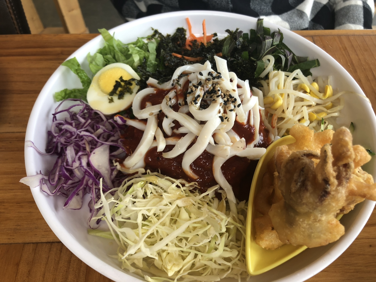 몸통은 쫄면에 비비고 다리는 튀겨져 나온다.