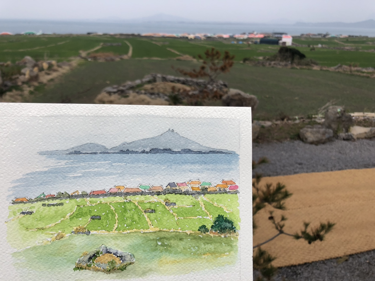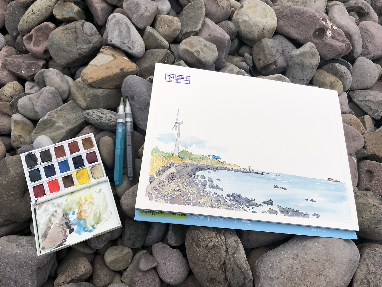오래도록 기억하고 싶은 해안가 풍경을 그린다.