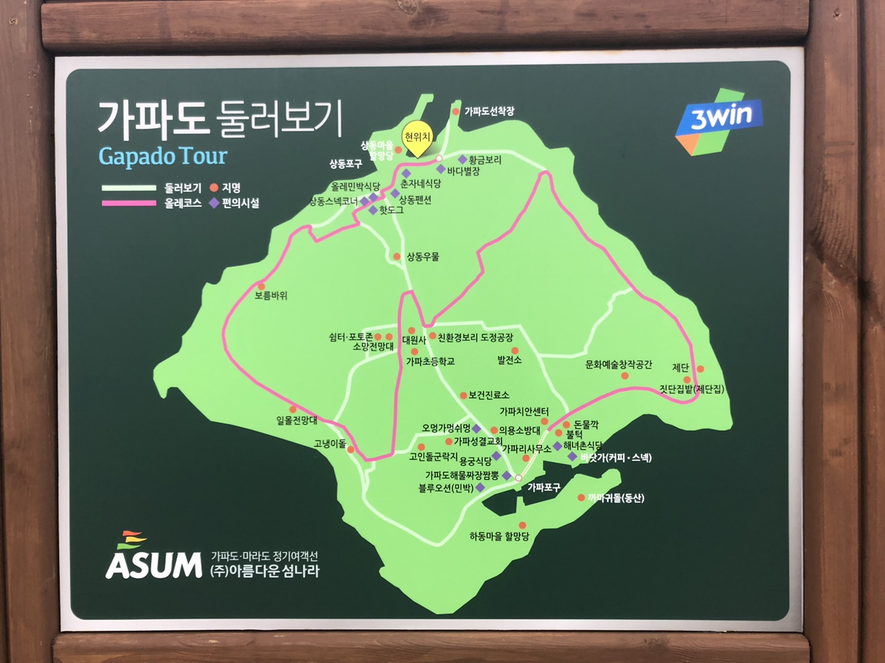 지도에 표시된 분홍색 길이 가파도 올레 10-1 코스 4.2km이다. 그래서 휴식의 올레라고 한다.