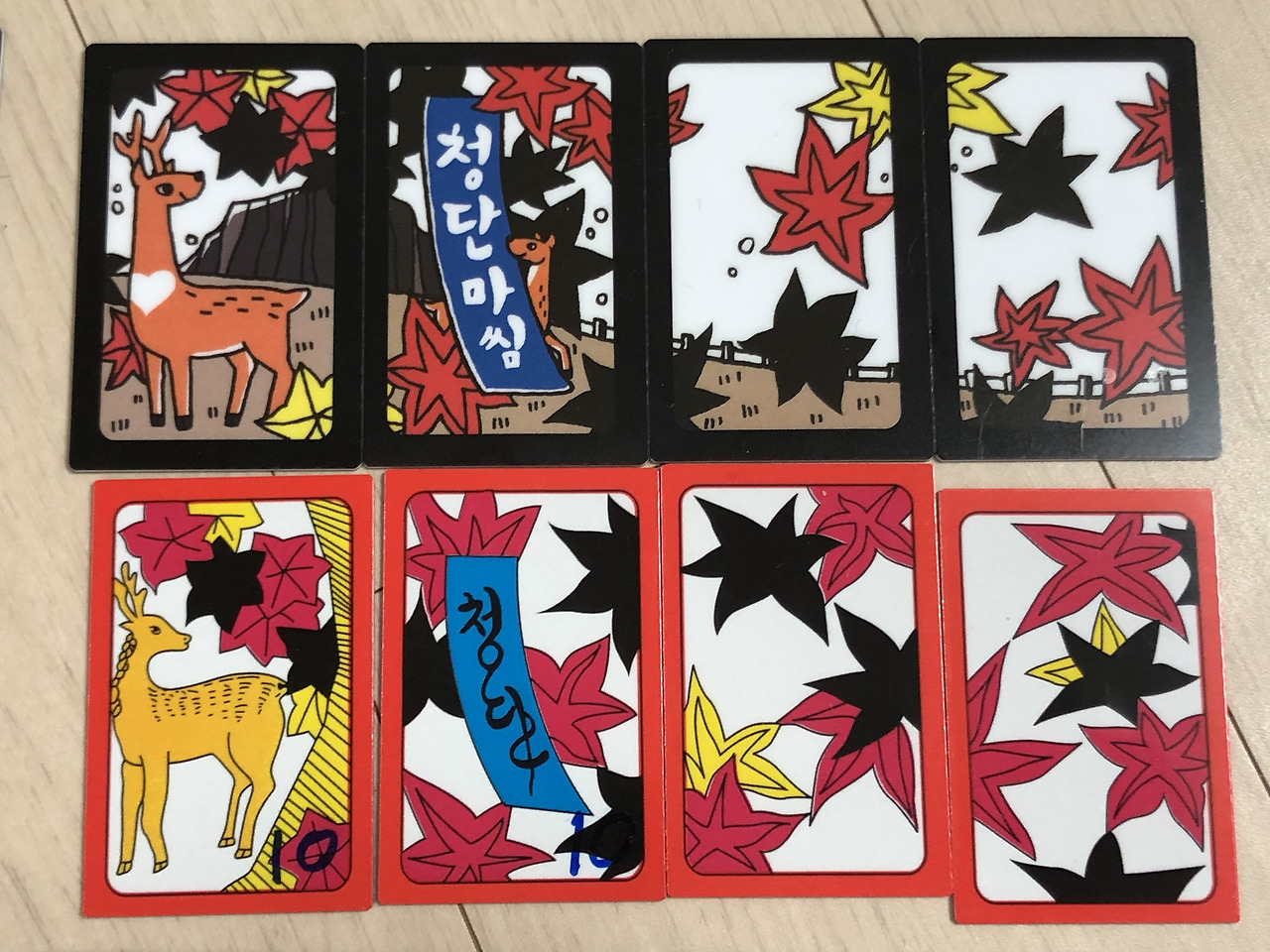 유튜브에서 섰다를 보고 재밌어 보였는지 화투를 사달라기에 편의점에서 파는 걸 사줬다.