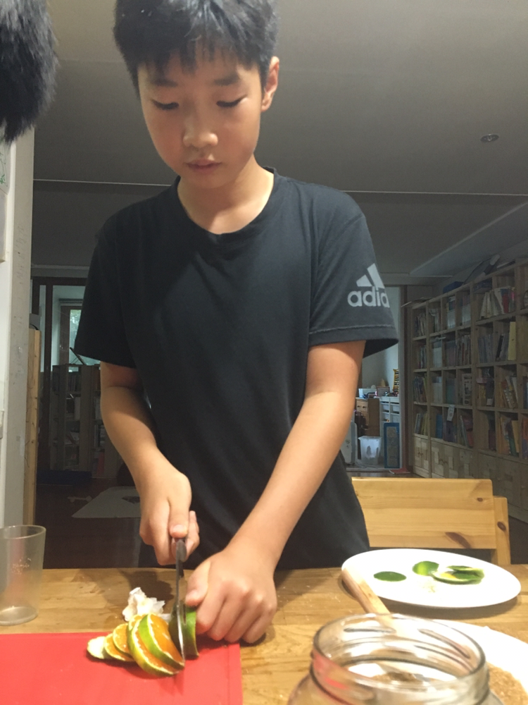 콩이네 마당에서 따 온 청귤로 청귤청 만들기. 그리고 부탁하기 연습.