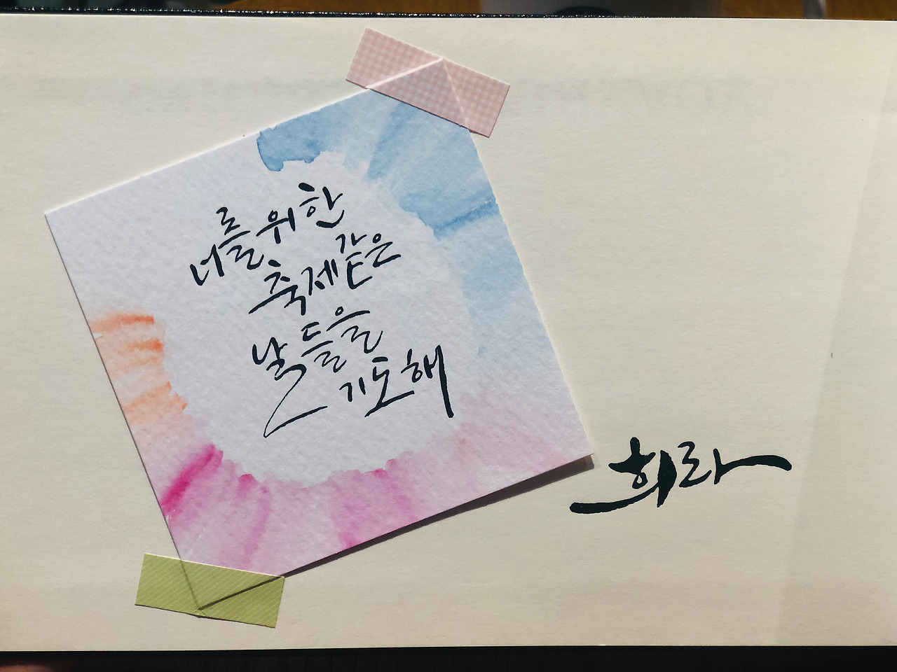 캘리그라피를 하는 귤밭애인 미라언니에게 새로산 양장북에 이름을 써달라고 부탁했더니